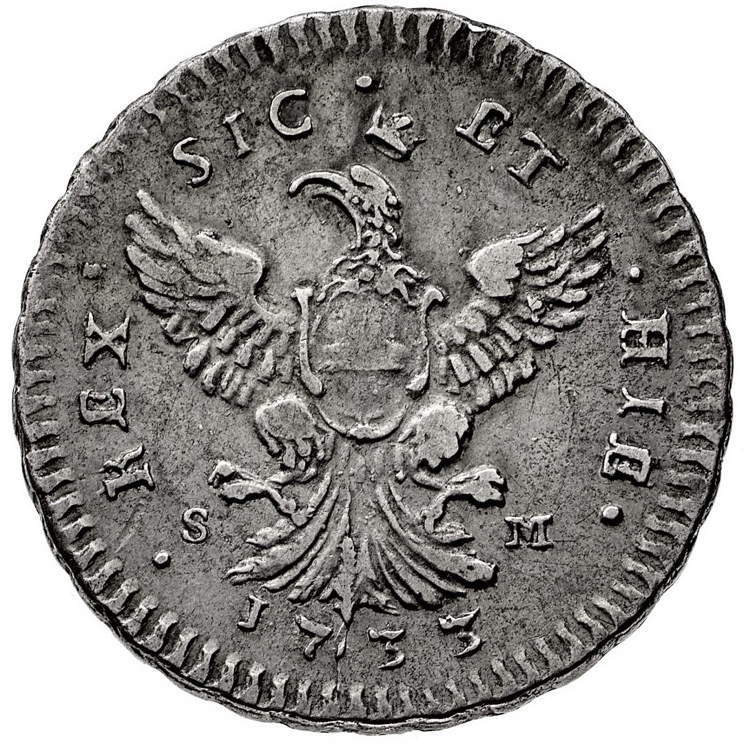 Carlo III d'Asburgo (1720-1734) - 4 Tarì 1733 - Zecca: Palermo - Diritto: effigie del Re a destra - Rovescio: aquila coronata ad ali spiegate con stemma asburgico sul petto - gr. 9,74 - BB