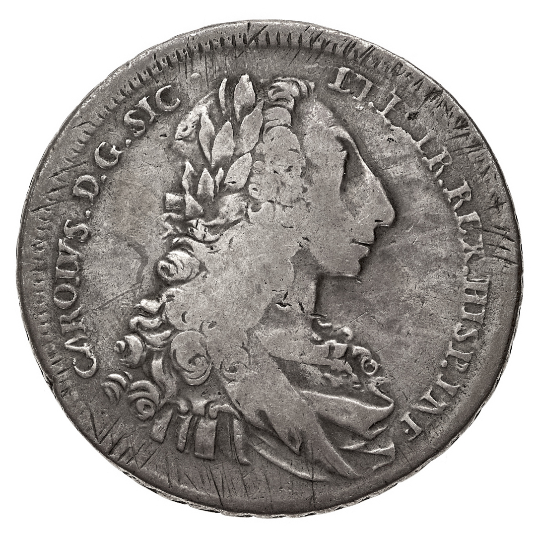Carlo III di Borbone (1734-1759) - 12 Tarì 1735 - Zecca: Palermo - Diritto: effigie del Re a destra - Rovescio: aquila coronata - gr. 27,00 - q.BB