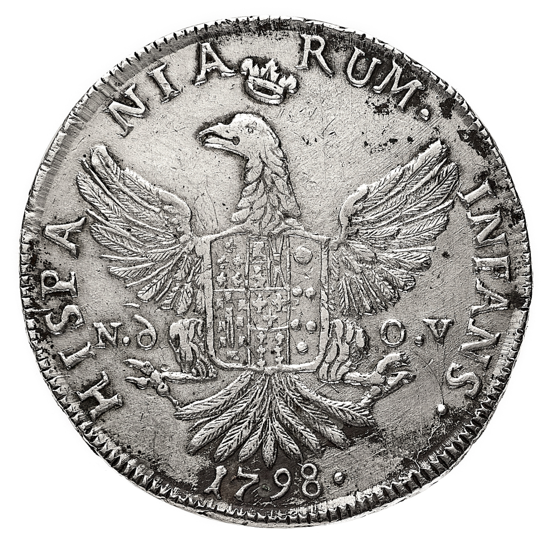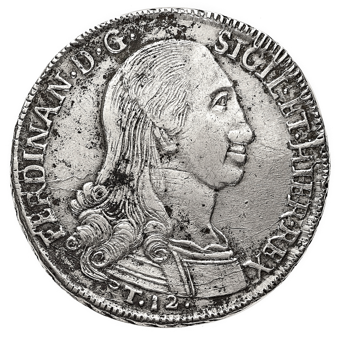 Ferdinando III di Borbone (1759-1799) - Piastra da 12 Tarì 1798 - Zecca: Palermo - Diritto: effigie del Re a destra - Rovescio: aquila coronata ad ali spiegate con stemma sul petto - gr. 27,10 - BB