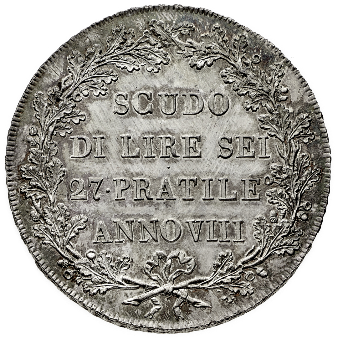 SCUDO DA 6 LIRE ANNO VIII (1799-1800) NGC MS 63