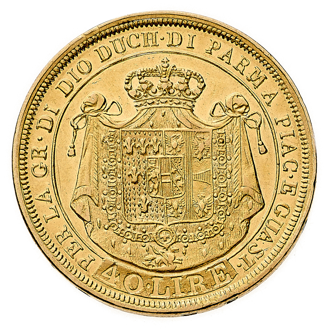 Maria Luigia d'Austria (1815-1847) - 40 Lire 1815 - Zecca: Milano - Diritto: effigie della Duchessa a sinistra - Rovescio: stemma entro padiglione ornato e coronato - gr. 12,87 - q.SPL