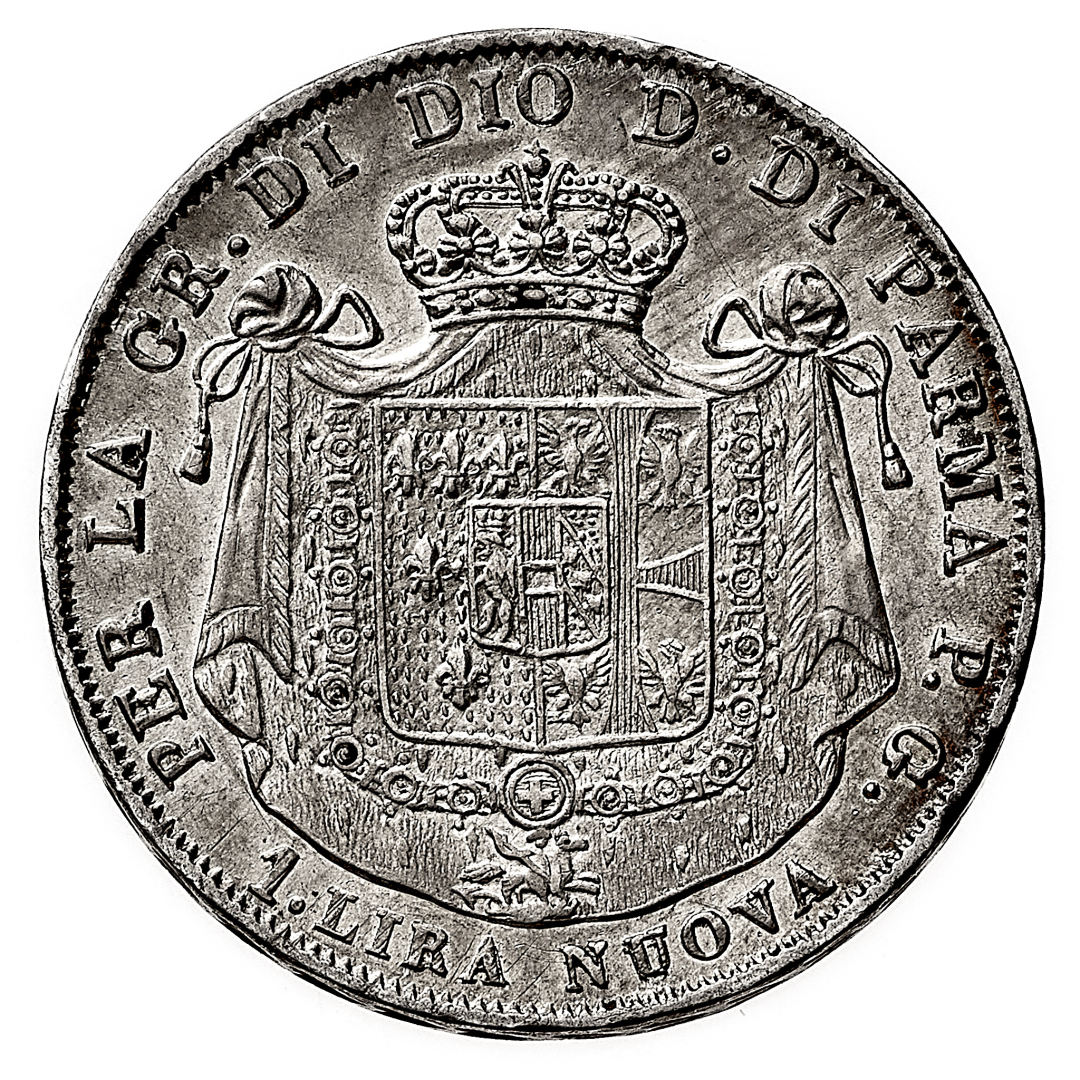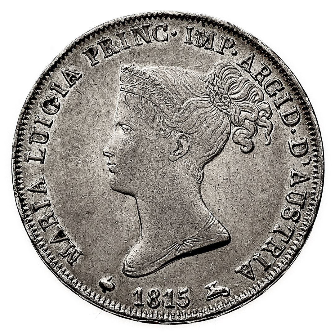 Maria Luigia d'Austria (1815-1847) - 1 Lira 1815 - Zecca: Milano - Diritto: effigie della Duchessa a sinistra - Rovescio: stemma entro padiglione ornato e coronato - gr. 5,00 - Migliore di SPL