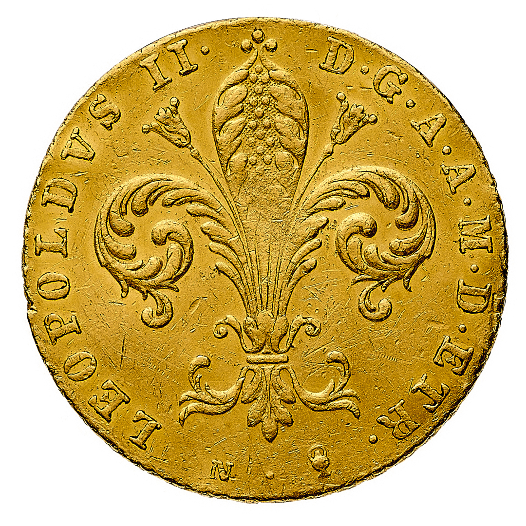 Leopoldo II di Lorena (1824-1859) - Ruspone da 3 Zecchini 1836 - Zecca: Firenze - Diritto: giglio fiorentino - Rovescio: San Giovanni Battista seduto a sinistra con il volto a destra, tiene una croce con la mano destra - gr. 10,50 - Rara - q.SPL