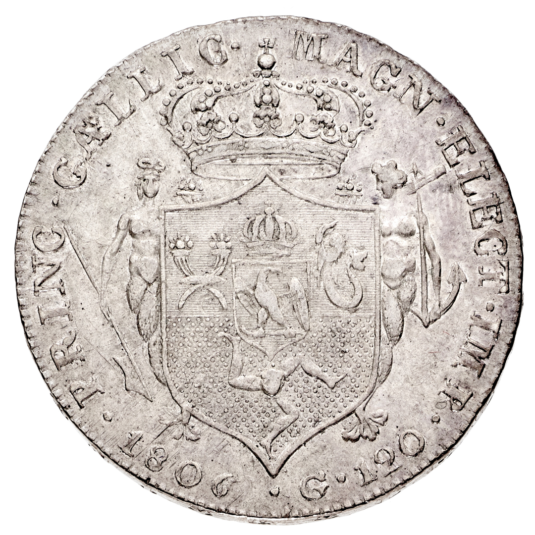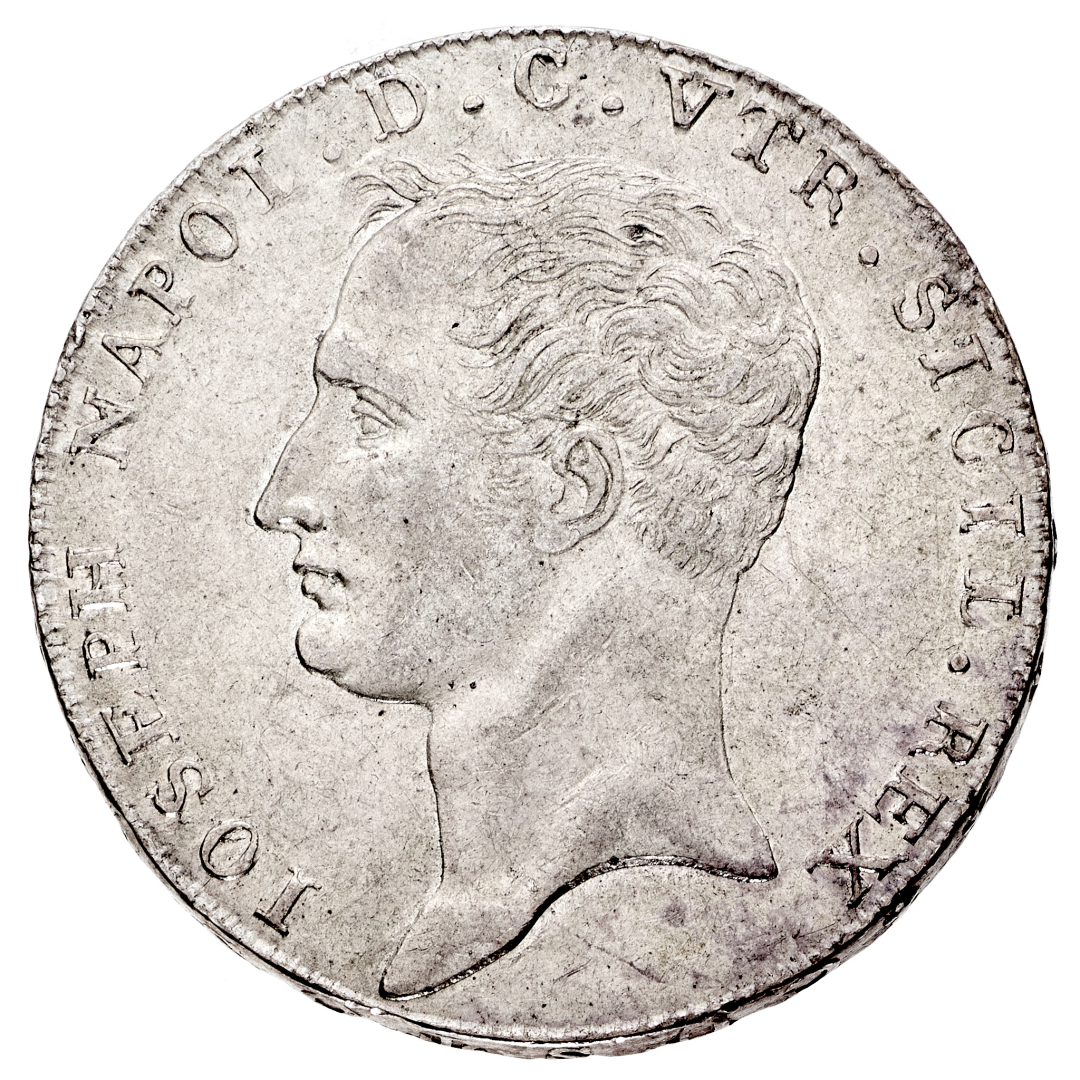 Giuseppe Napoleone (1806-1808) - Piastra da 120 Grana 1806 - Zecca: Napoli - Diritto: effigie di Giuseppe Napoleone a sinistra - Rovescio: stemma coronato sorretto da due sirene - gr. 27,55 - Rara - SPL