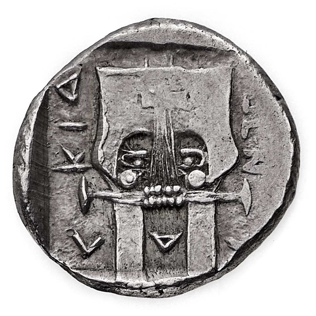Olinto - Tetrobolo databile al periodo 430-412 a.C. - Diritto: testa laureata di Apollo a destra - Rovescio: cythara - gr. 2,43 - Patina di medagliere, q.SPL - Da un appunto del collezionista, acquistata privatamente dalla NAC (Zurigo 2003)