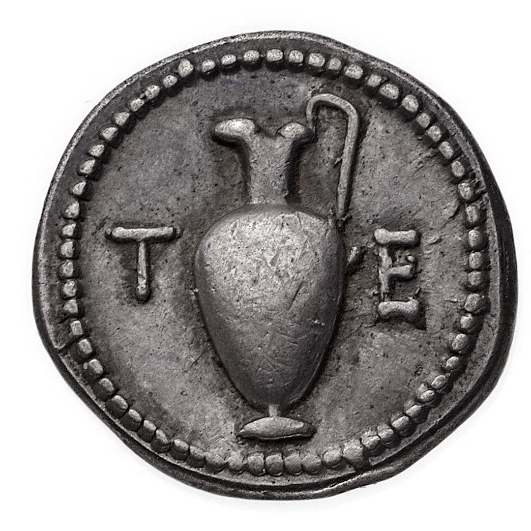 Terone - Tetrobolo databile al periodo 424-422 a.C. - Diritto: Oinochoe - Rovescio: quadrato quadripartito in incuso - gr. 2,47 - Patina di medagliere, SPL - Da un appunto del collezionista, acquistata privatamente dalla NAC (Zurigo 2003)