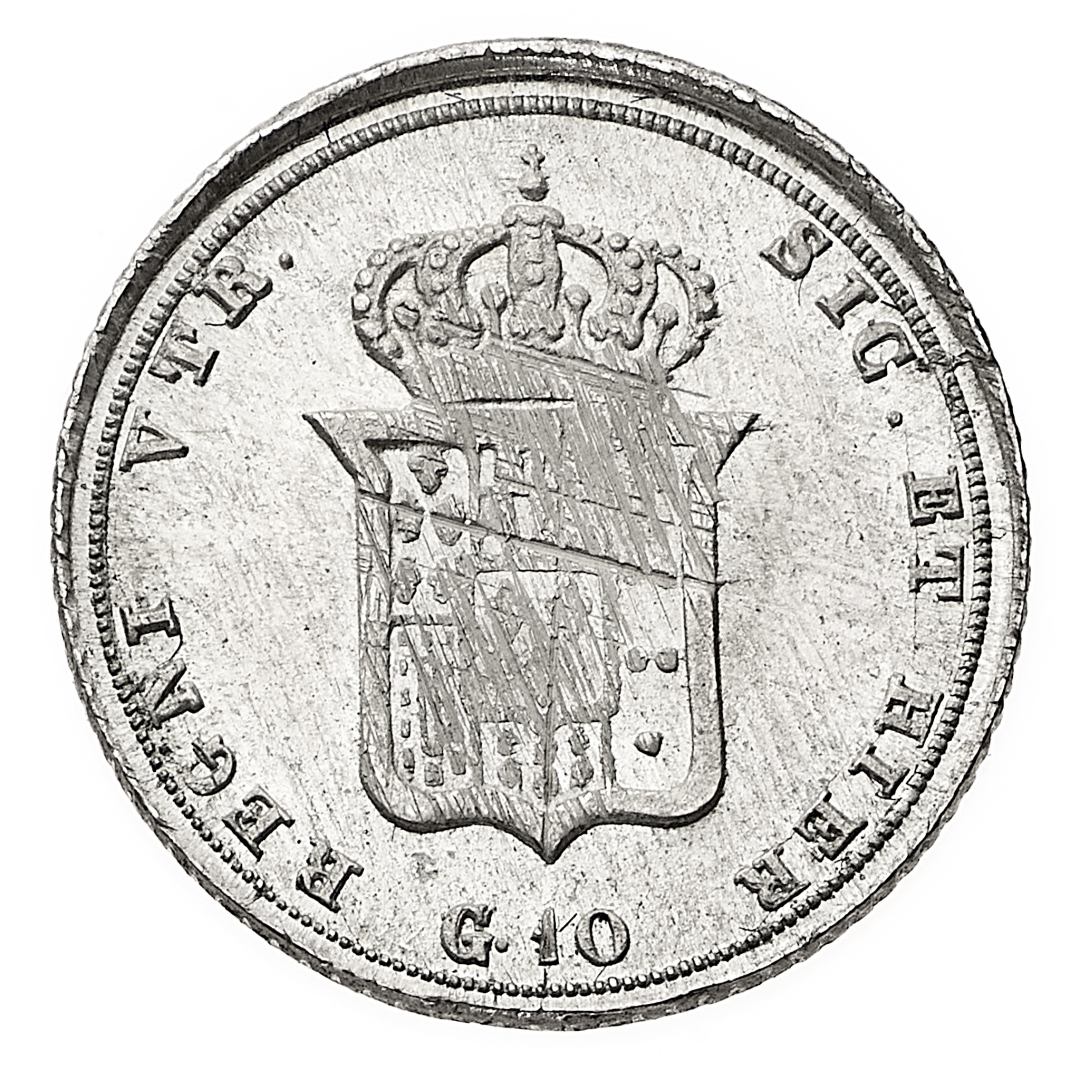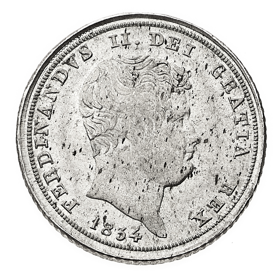 Ferdinando II di Borbone (1830-1859) - Carlino da 10 Grana 1834 - Zecca: Napoli - Diritto: effigie del Re a destra - Rovescio: stemma coronato - gr. 2,30 - Lievi graffi di aggiustamento al rovescio, migliore di SPL
