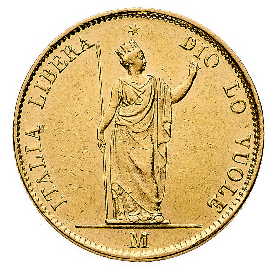 Lombardia - 20 Lire 1848 - Zecca: Milano - Diritto: valore entro corona di alloro e di quercia - Rovescio: Italia turrita stante con asta - gr. 6,44 - Migliore di SPL