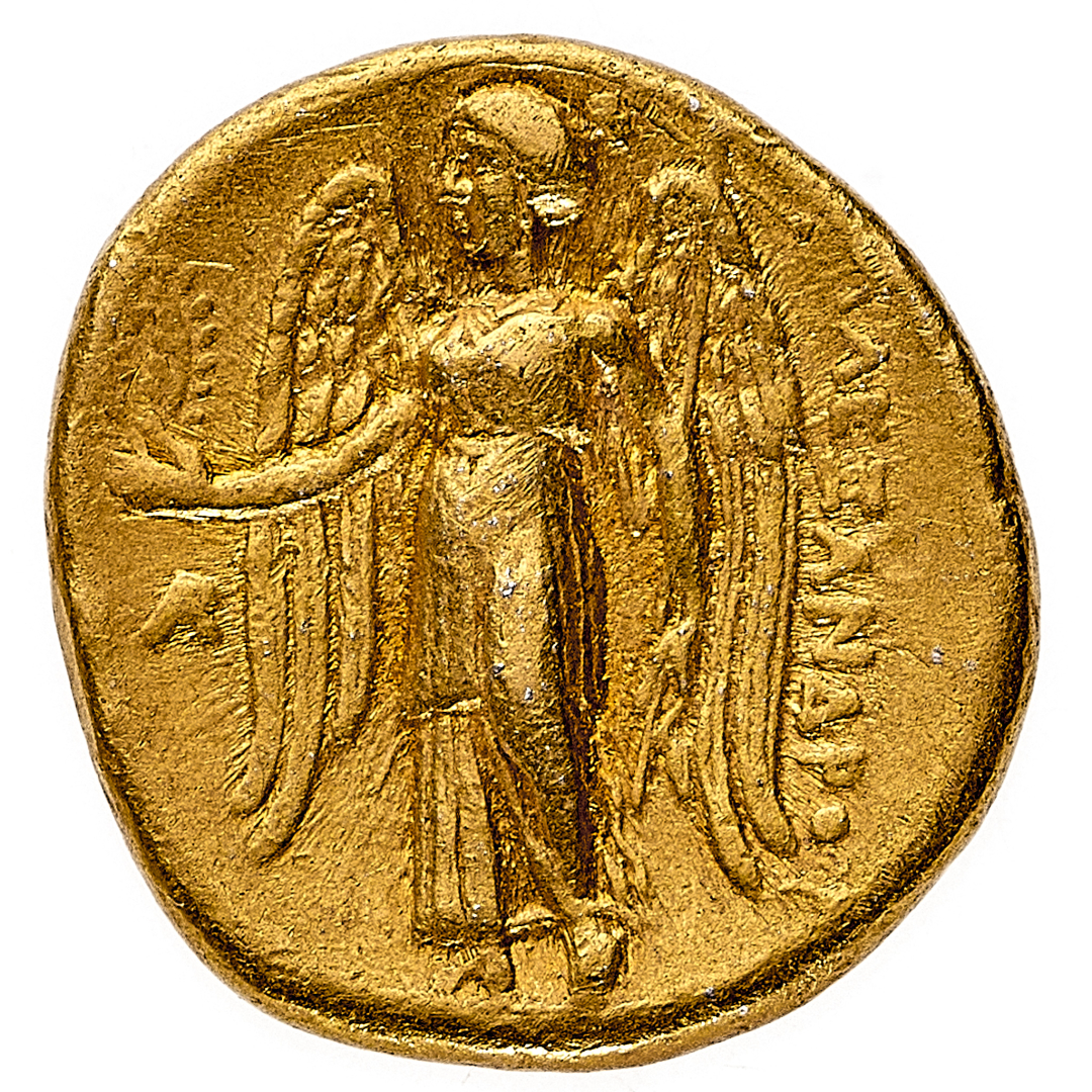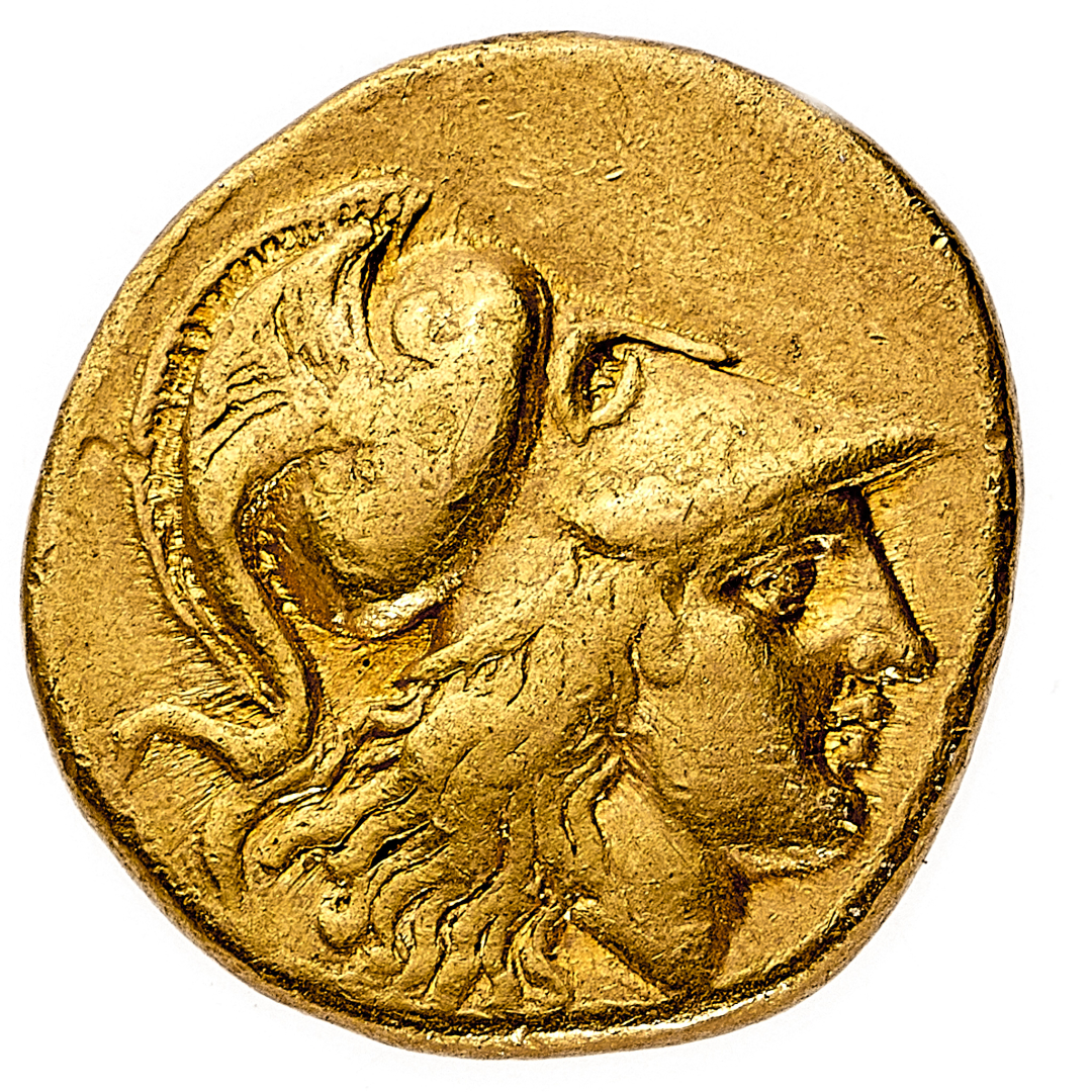 Alessandro III (336-323 a.C.) - Statere databile agli anni 325-324 a.C. - Zecca: Arados - Diritto: testa di Atena con elmo corinzio crestato - Rovescio: la Vittoria stante a sinistra tiene una corona con la mano destra e uno stilo con la sinistra; nel campo a sinistra un monogramma - gr. 8,51 - Migliore di BB