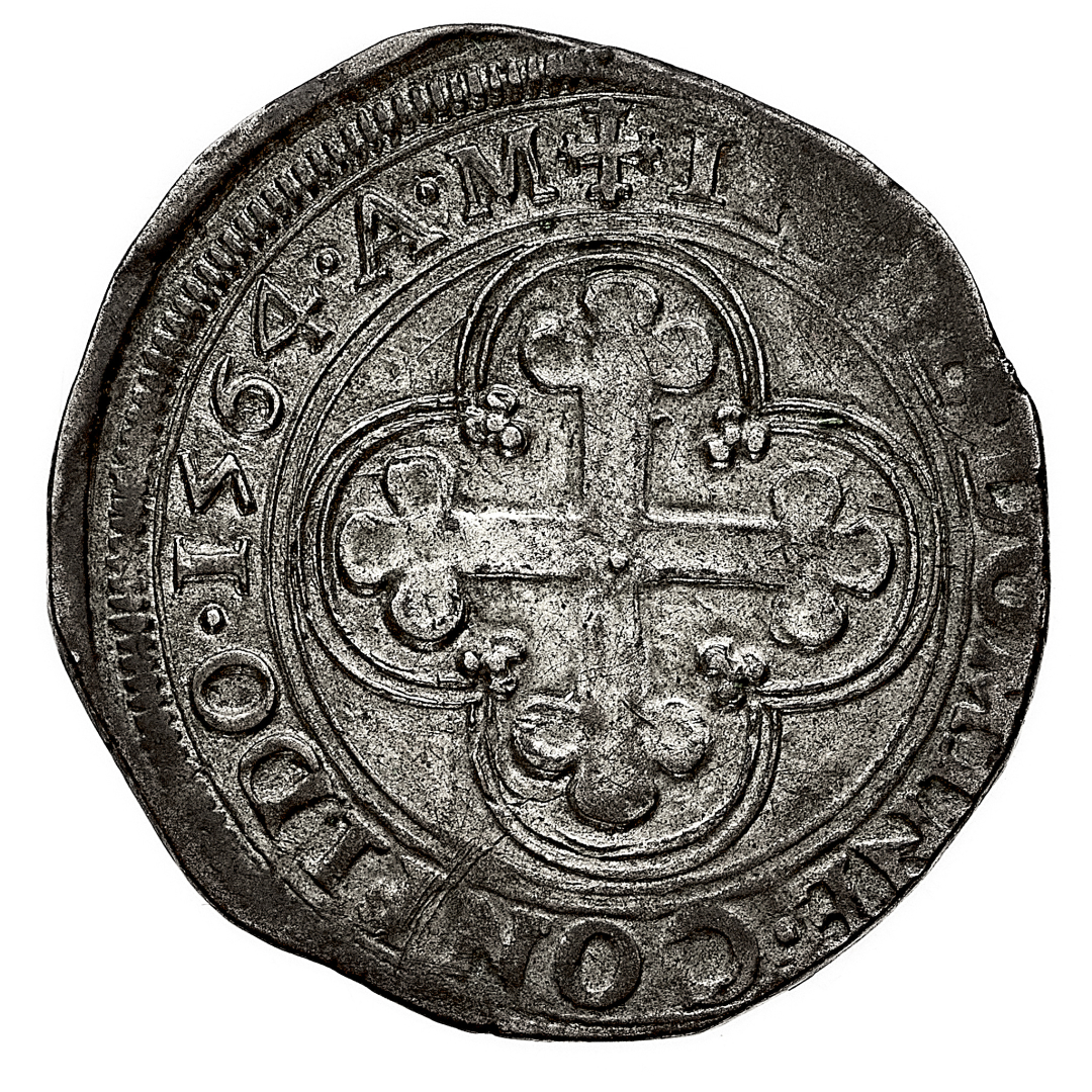 Bianco da 4 Soldi 1564 - Zecca: Chambéry - Diritto: stemma completo di Casa Savoia coronato - Rovescio: croce mauriziana - gr. 4,93 - Non comune - Migliore di BB