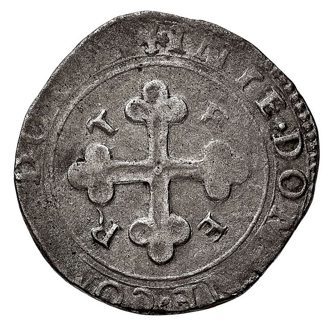 Bianco da 4 Soldi di II tipo 1579 - Zecca: Chambéry - Diritto: stemma completo di Casa Savoia coronato - Rovescio: croce mauriziana accantonata da FERT - gr. 4,55 - Rara - q.BB