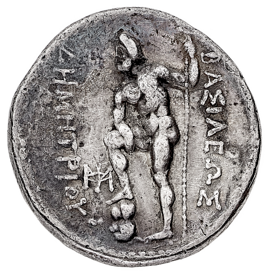 Demetrio I Poliorcete (306-283 a.C.) - Tetradramma databile al periodo 290-287 a.C. - Zecca: incerta in Eubea - Diritto: testa diademata a destra - Rovescio: Poseidone stante a sinistra, tiene il tridente con la mano sinistra e poggia il piede destro su una roccia - gr. 16,39 - Rara - BB