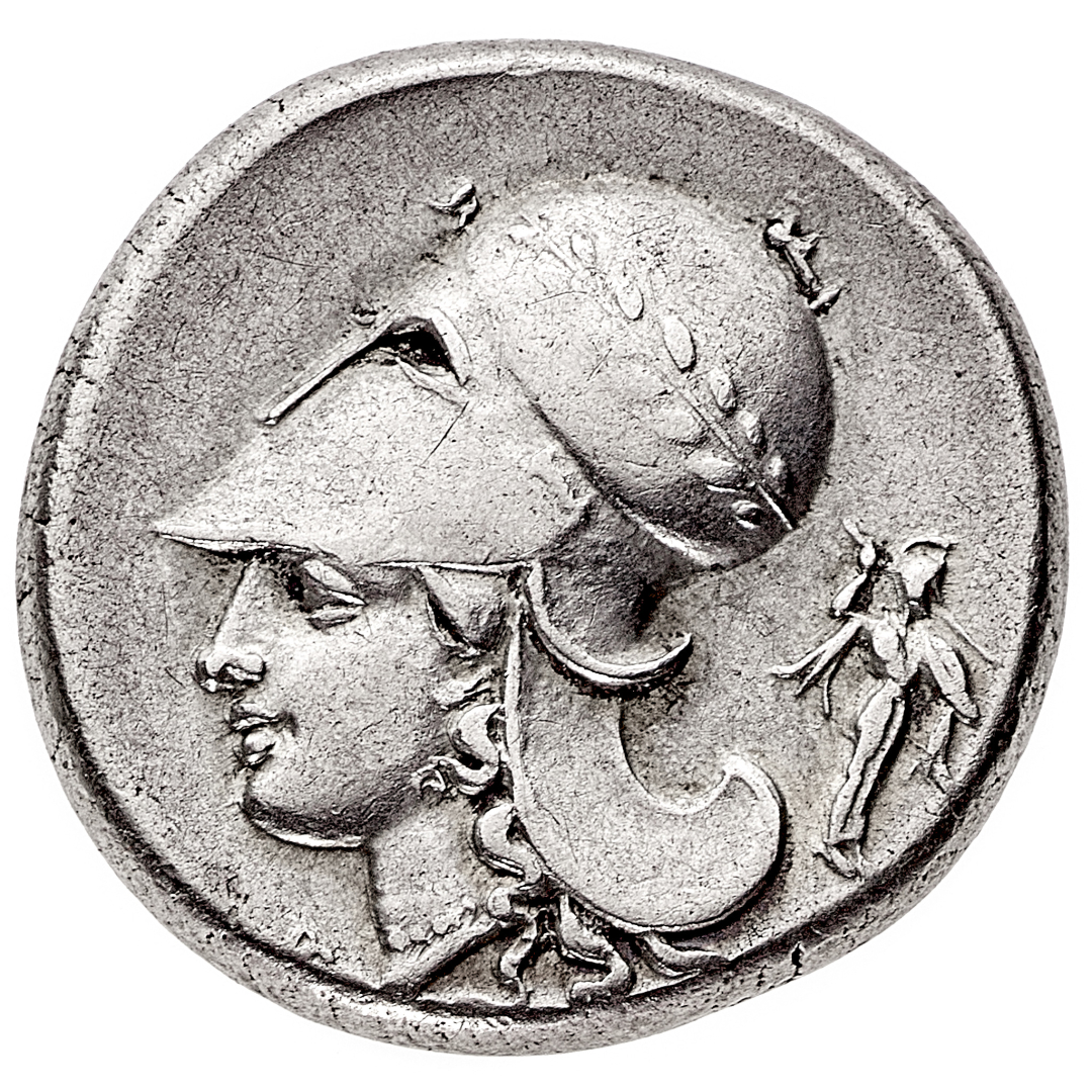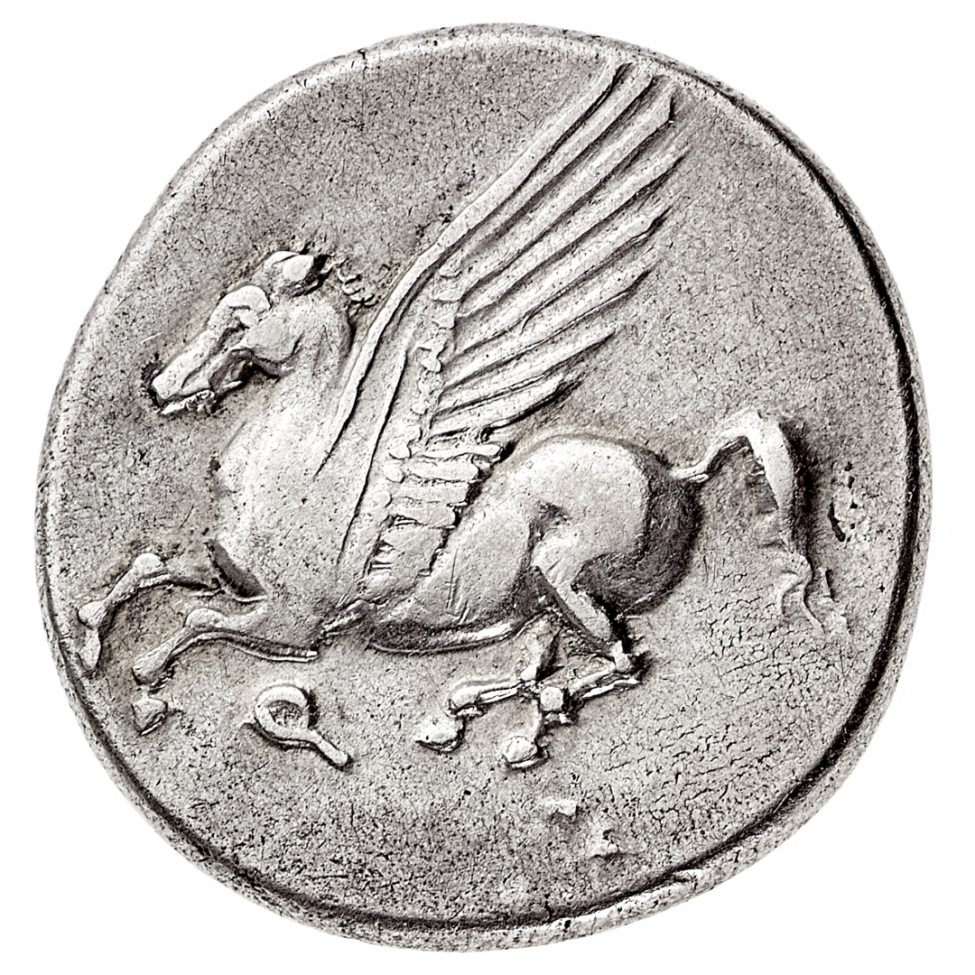 Corinto - Statere databile al periodo 345-307 a.C. - Diritto: Pegaso con le redini sciolte, in volo verso sinistra - Rovescio: testa elmata di Atena a sinistra; nel campo a destra Atena Promachos - gr. 8,51 - q.SPL