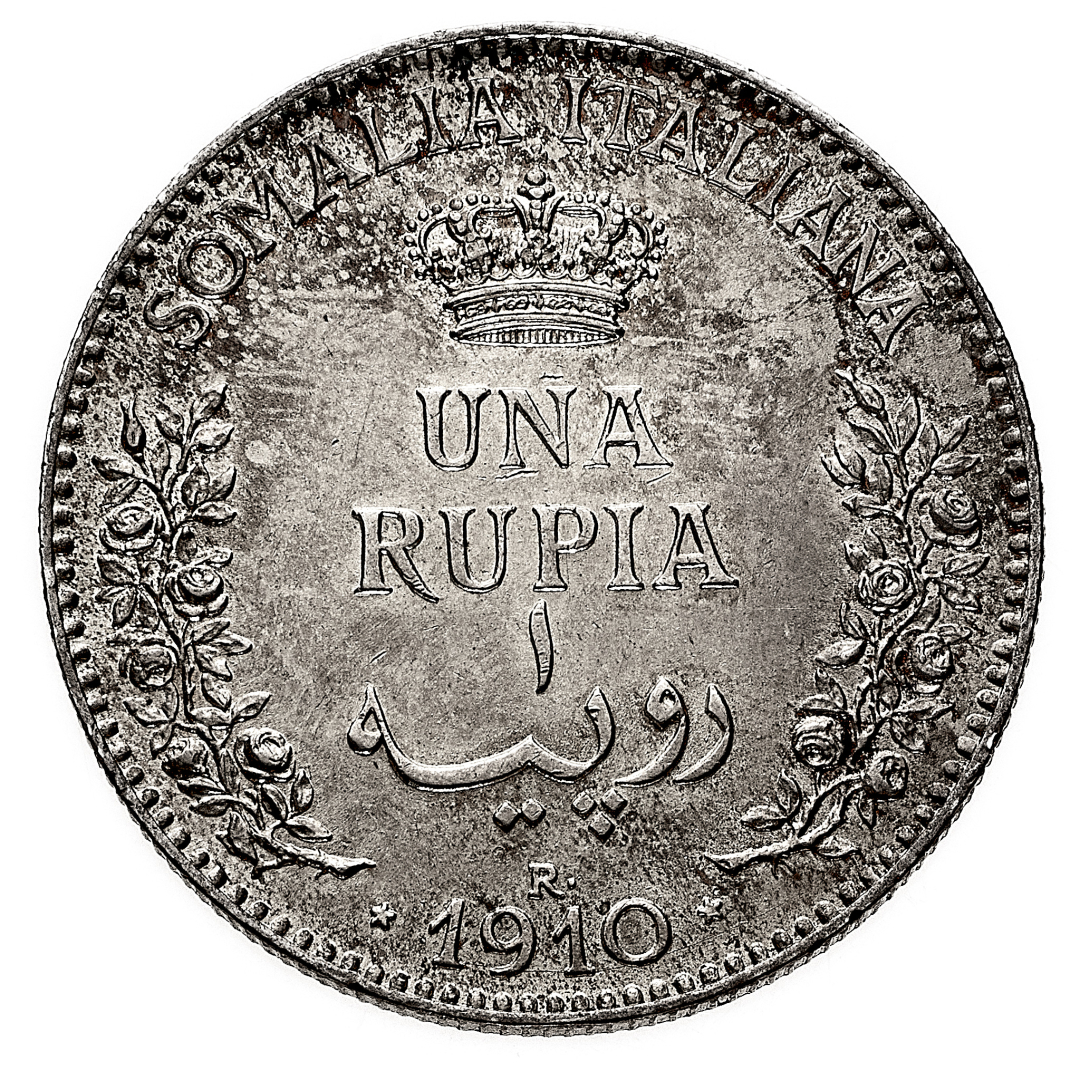 Colonie - Somalia - 1 Rupia 1910 - Zecca: Roma - Diritto: effigie del Re a destra - Rovescio: corona e valore bilingue entro due rami di rose - gr. 11,64 - q.FDC
