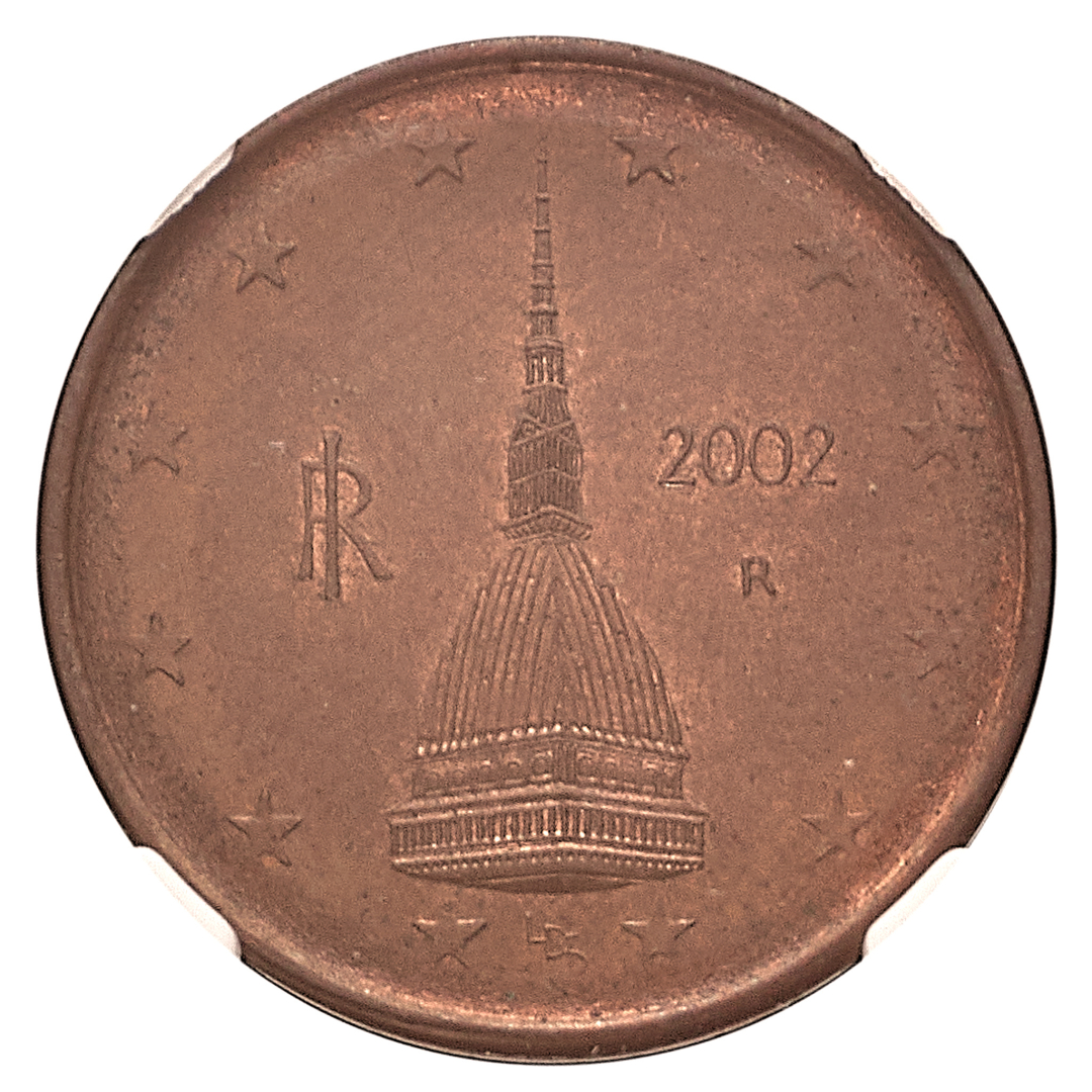 1 Centesimo Mole Antonelliana 2002 NGC MS 64 BN - Zecca: Roma - Rara - Cert. #6771964-001