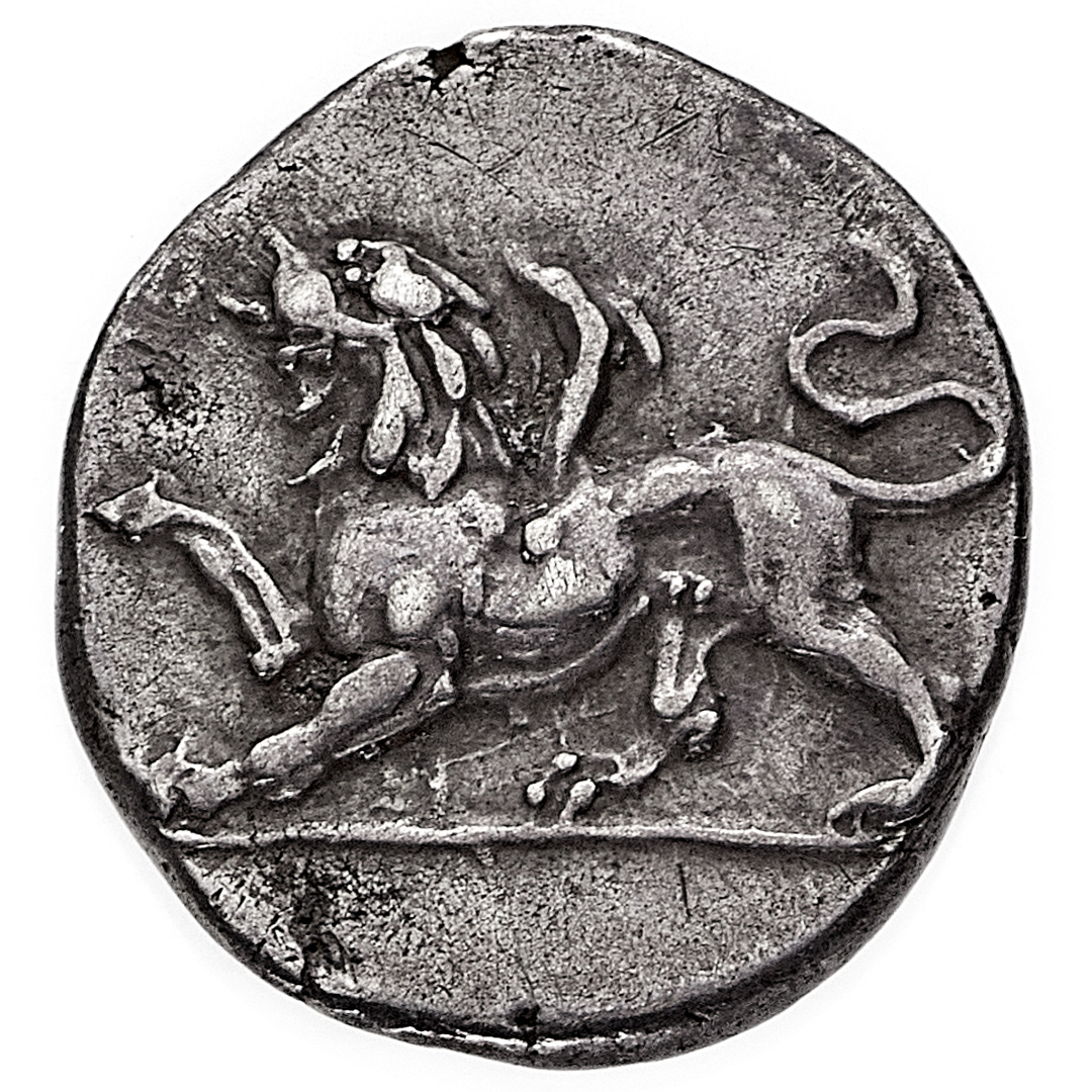 Sikyon - Emidracma databile al periodo 330-280 a.C. - Diritto: Chimera stante a sinistra - Rovescio: colomba in volo verso sinistra; globetto sopra la coda - gr. 2,91 - Patina di medagliere, migliore di BB - Corredata da cartellino di provenienza