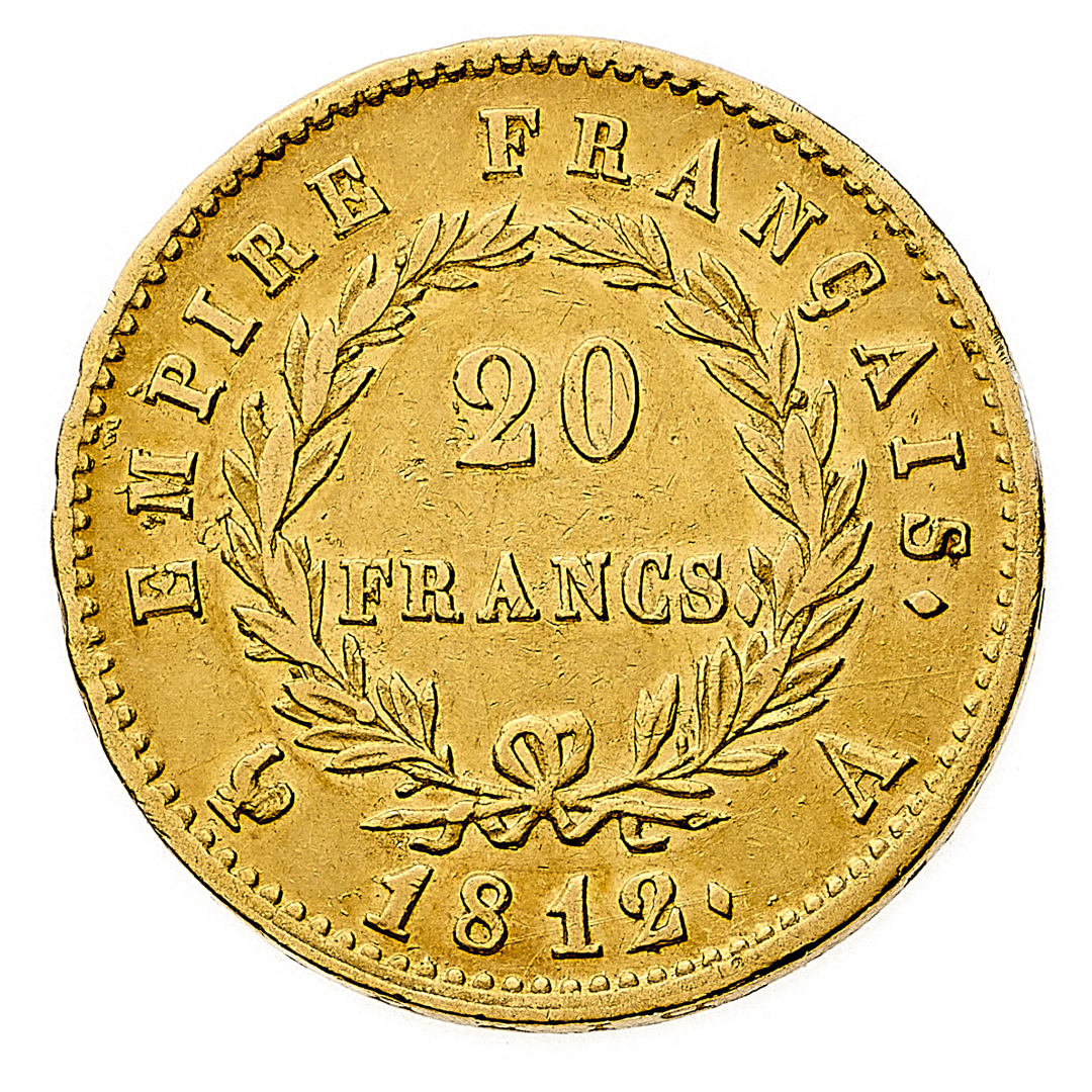 Napoleone I Imperatore (1804-1814) - 20 Franchi 1812 - Zecca: Parigi - Diritto: testa laureata di Napoleone a sinistra - Rovescio: valore entro corona di alloro - gr. 6,43 - q.SPL