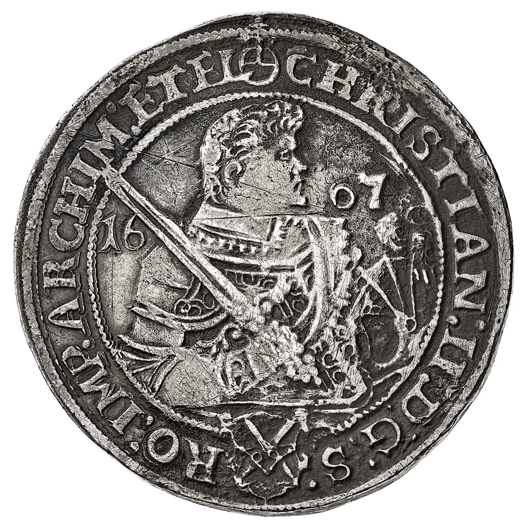 Sachsen - Christian II, Johann Georg I e August (1591-1611) - Tallero 1607 - Zecca: Dresda - Diritto: busto corazzato a destra - Rovescio: mezzi busti affrontati - gr. 27,43 - BB