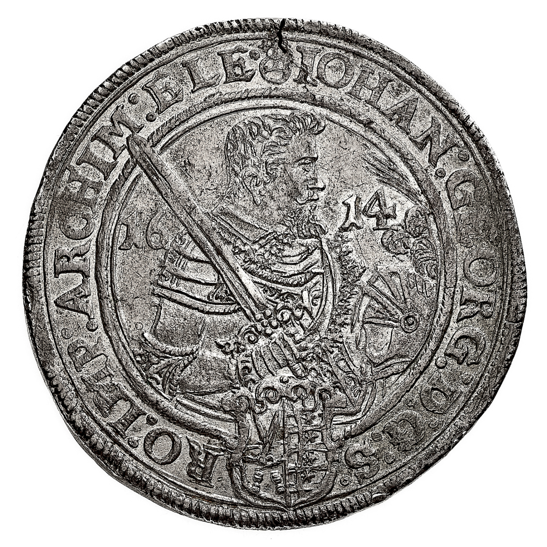 Sachsen - Georg I (1611-1656) - Tallero 1614 - Zecca: Dresda - Diritto: mezzo busto corazzato e armato dell'Arciduca a destra - Rovescio: busto dell'Arciduca a destra entro un cerchio di stemmi - gr. 28,98 - Lieve frattura di conio, SPL