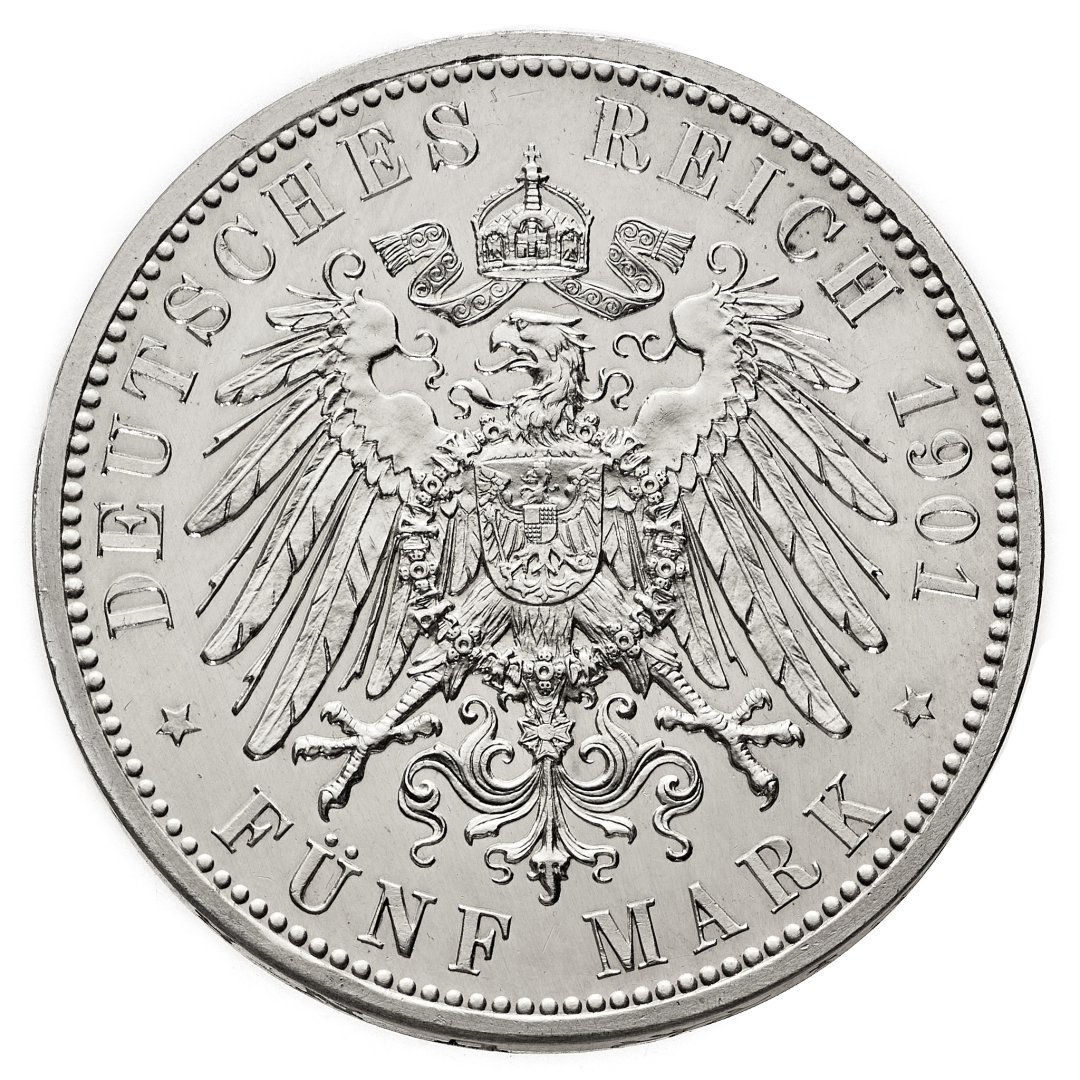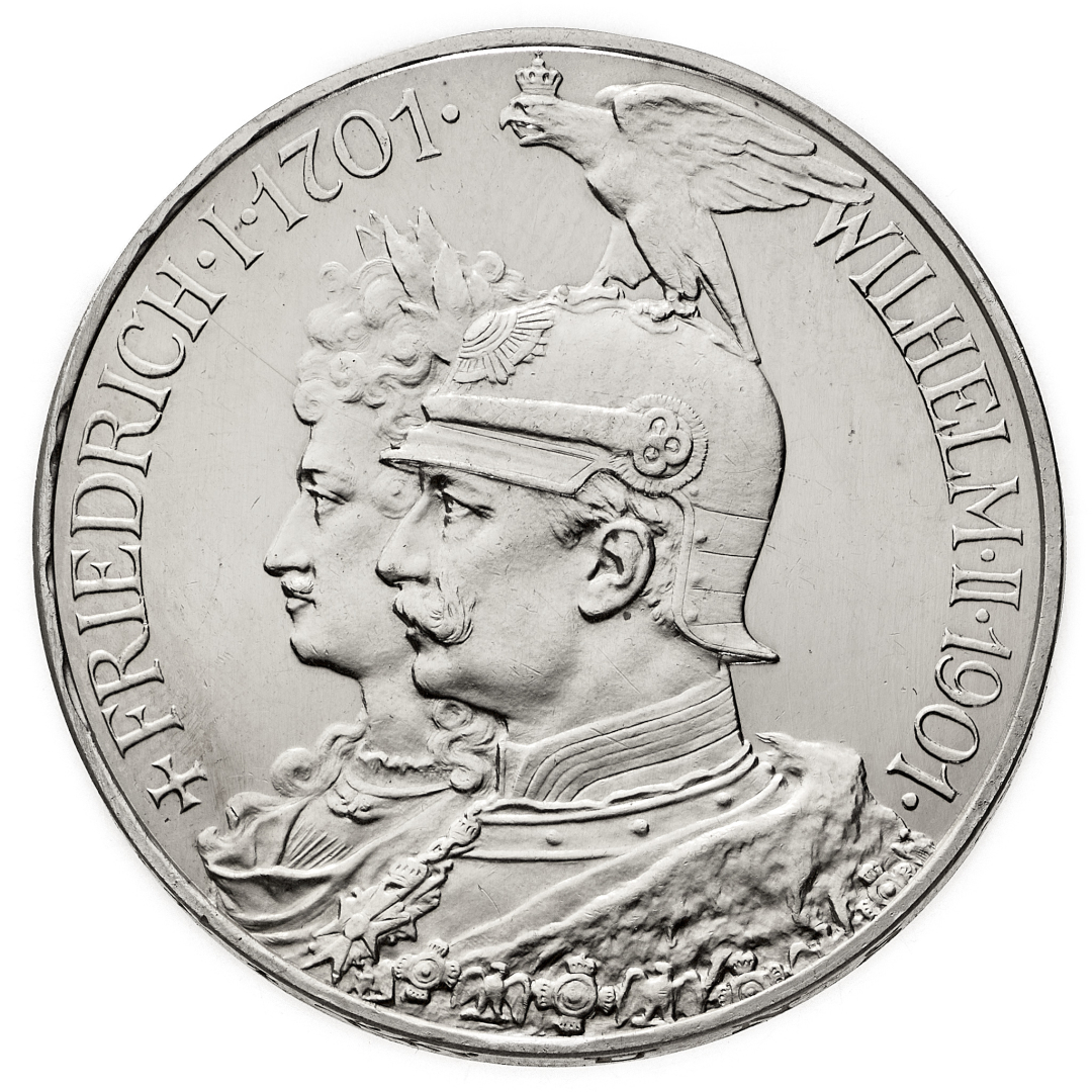 Preussen - Wilhelm II (1888-1918) - 5 Marchi 1901 - Zecca: Berlino - Diritto: effigi di Federico I e Guglielmo II a sinistra - Rovescio: aquila coronata ad ali spiegate - gr. 27,79 - Migliore di SPL
