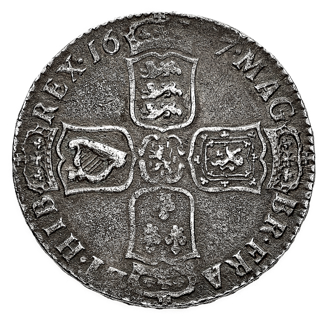 William III (1694-1702) - 1/2 Crown 1697 - Zecca: Londra - Diritto: busto laureato del Re a destra - Rovescio: quattro stemmi coronati disposti a croce - gr. 14,27 - Porosità del metallo, BB