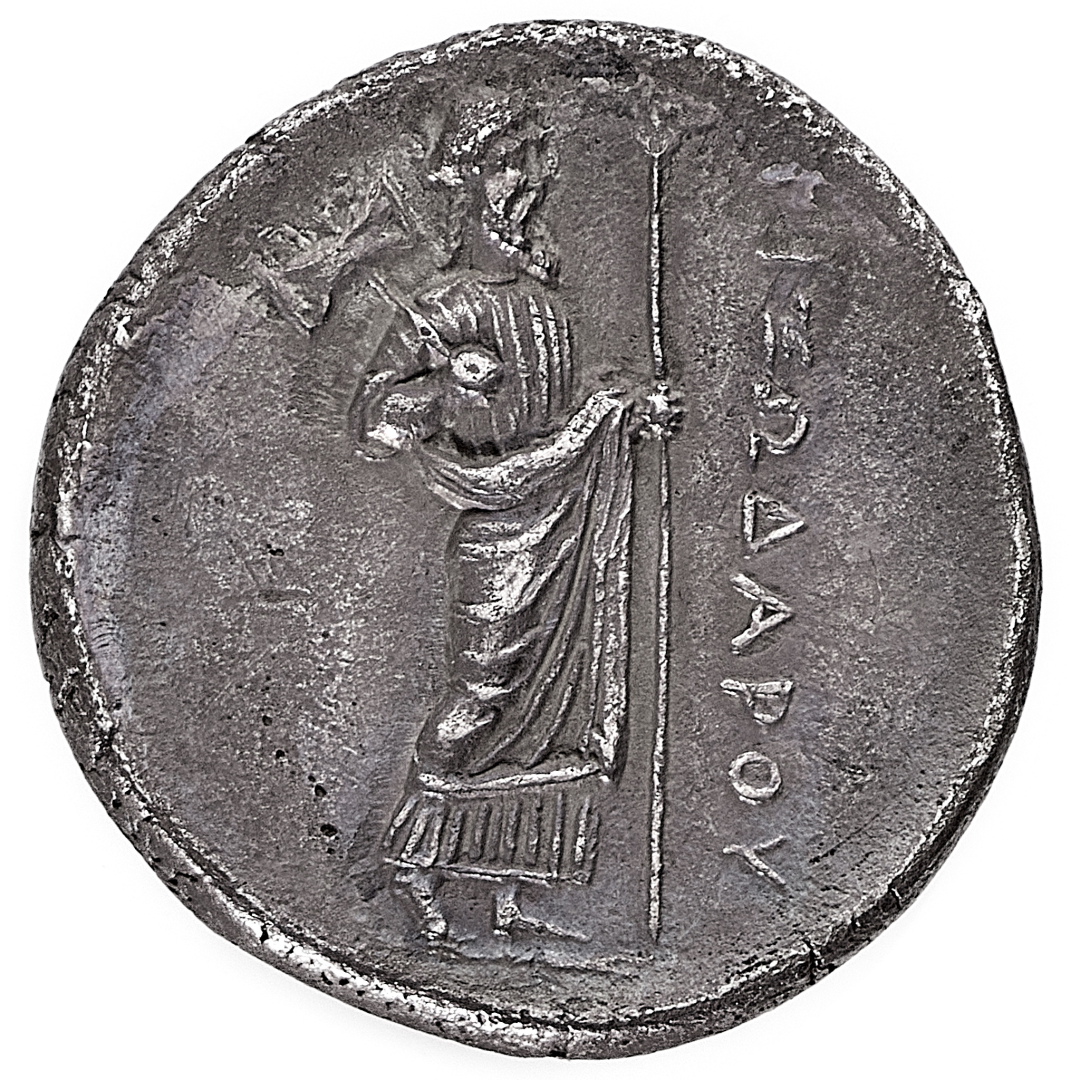 Pixodauro (340-334 a.C.) - Didramma - Zecca: Alicarnassus - Diritto: testa di Apollo di tre quarti - Rovescio: Zeus Labaundos stante a destra indossa una lunga veste, tiene una doppia ascia (labrys) con la mano destra e una lancia con la sinistra - gr. 6,62 - Patina di medagliere, SPL - Proveniente dall'asta Dr. Busso Peuf Nachf. 392, Frankfurt am Main 4.5.2007, n. 4349