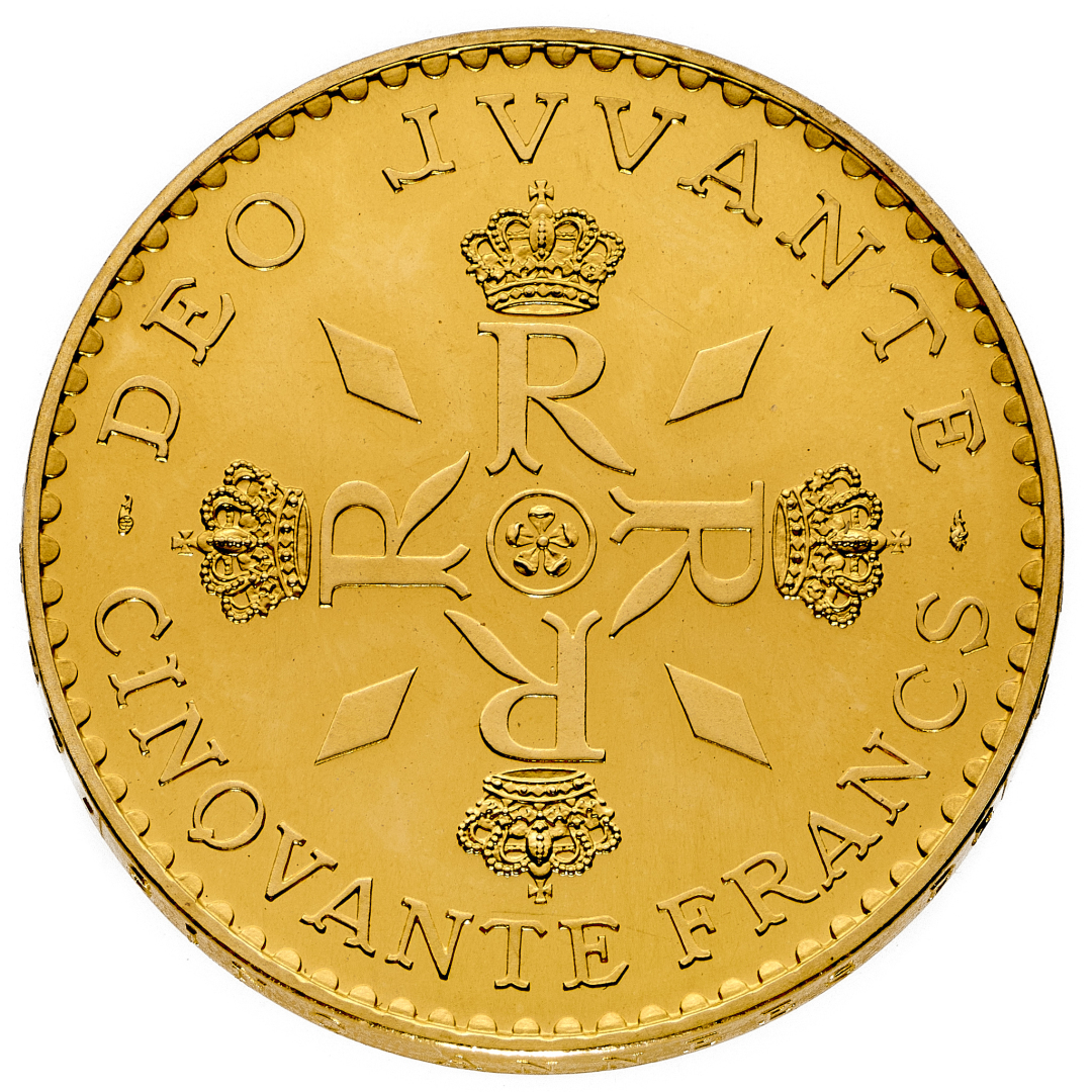 Ranieri III (1949-2005) - 50 Francs 1974 Essai - Zecca: Parigi - Diritto: busto del Re in uniforme a destra - Rovescio: croce formata da 4 R coronate - gr. 51,12 - FDC