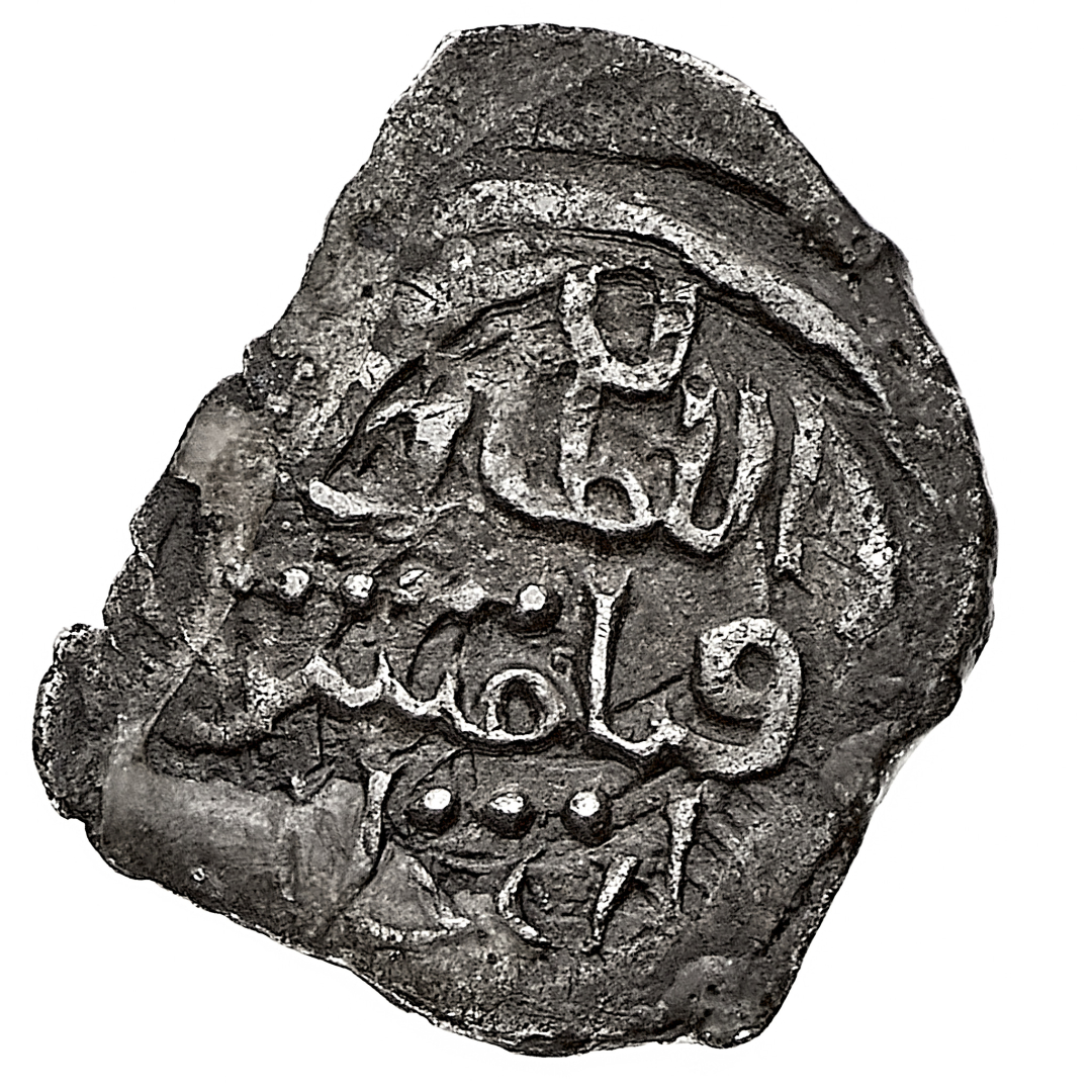 Dmitry Donskoy (1362-1389) - Denga databile al periodo 1391-1393 circa - Diritto: guerriero a sinistra tiene la spada con la mano sinistra - Rovescio: legenda in arabo - gr. 0,90 - Molto rara - BB - Proveniente dall'asta Katz eAuction 106, 27.12.2023, n. 1206