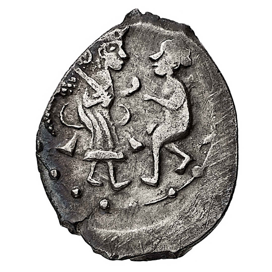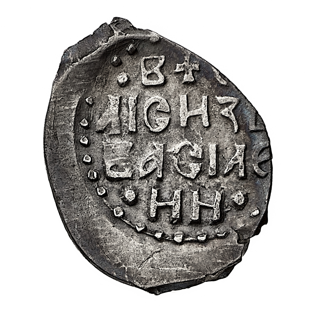 Vasiliy Dmitrievich (1389-1425) - Denga - Diritto: legenda su quattro righe - Rovescio: scena di omaggio al Principe - gr. 0,63 - Rara - q.SPL - Proveniente dall'asta Katz eAuction 25, 24.9.2019, n. 3133