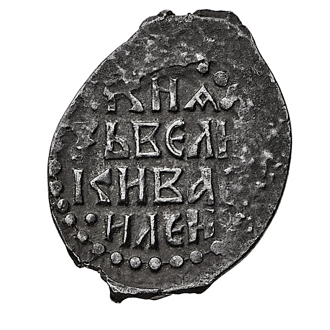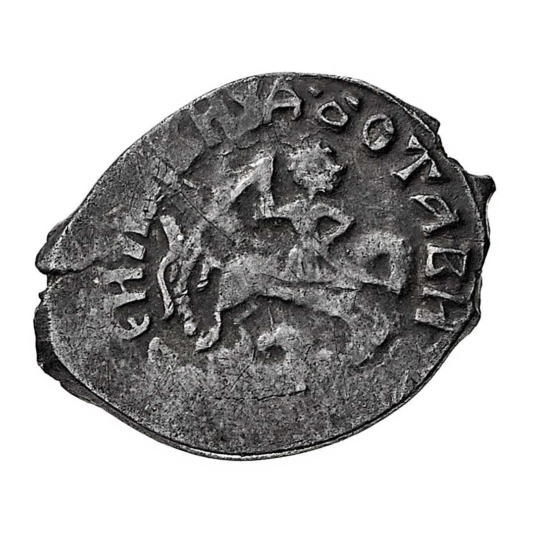 Vasiliy Dmitrievich (1389-1425) - Denga - Diritto: legenda su quattro righe - Rovescio: cavaliere al galoppo verso destra - gr. 0,69 - Molto rara, solo 3 esemplari conosciuti - BB - Proveniente dall'asta Katz eAuction 106, 27.12.2023, n. 1204