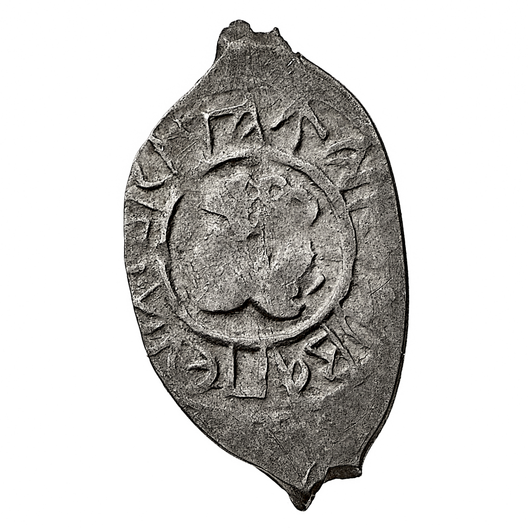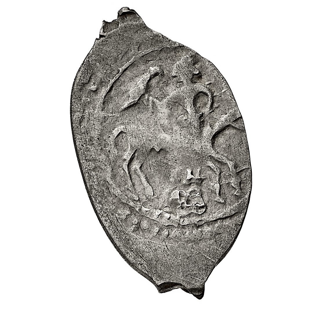 Peter Dmitriewitsch (1389-1428) - Denga - Diritto: giano bifronte - Rovescio: cavaliere a destra tiene un falcone con la mano destra - gr. 0,84 - Rara - BB - Proveniente dall'asta Katz eAuction 25, 24.9.2019, n. 3129
