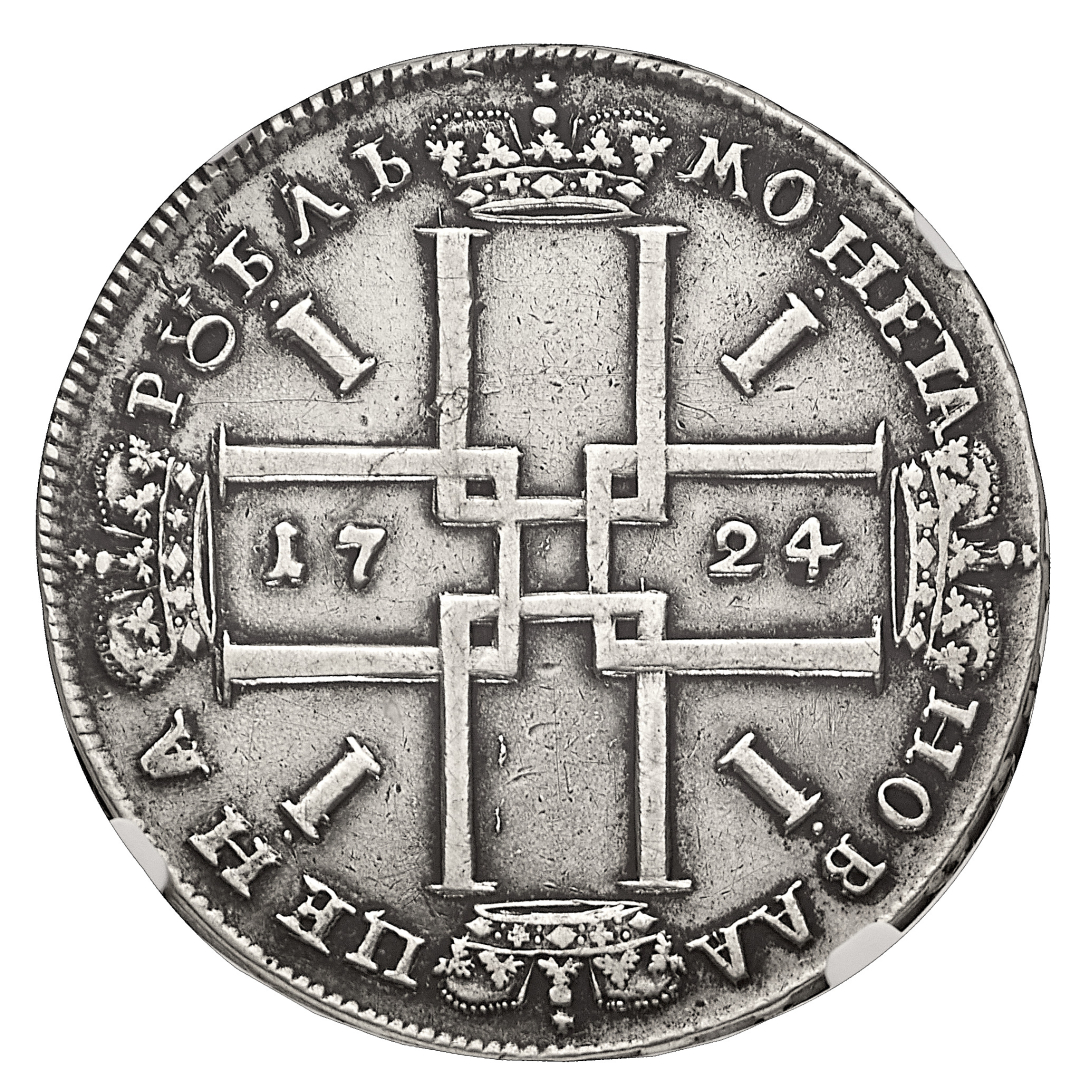 Pietro I (1699-1725) - Rublo 1724 NGC XF DETAILS - Zecca: Red Mint - Diritto: busto di Pietro a destra - Rovescio: croce formata da quattro P coronate - gr. 29,20 - Rara - Cert. #8237113-016 (CLEANED)