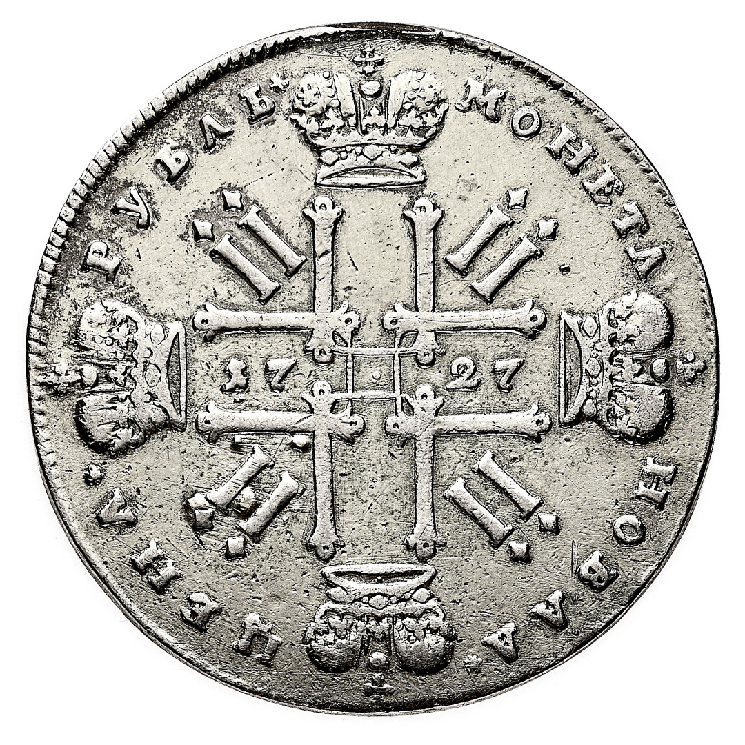 Pietro II (1727-1730) - Rublo 1727 - Zecca: Red Mint - Diritto: busto di Pietro a destra - Rovescio: croce formata da quattro P coronate - gr. 26,91 - Tracce di montatura, q.BB