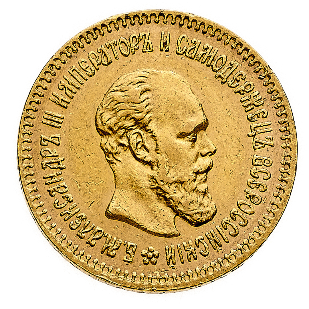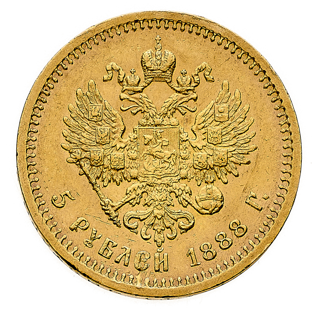 Alessandro III (1881-1894) - 5 Rubli 1888 - Zecca: San Pietroburgo - Diritto: effigie di Alessandro III a destra - Rovescio: aquila bicipite coronata con stemma sul petto - gr. 6,46 - SPL