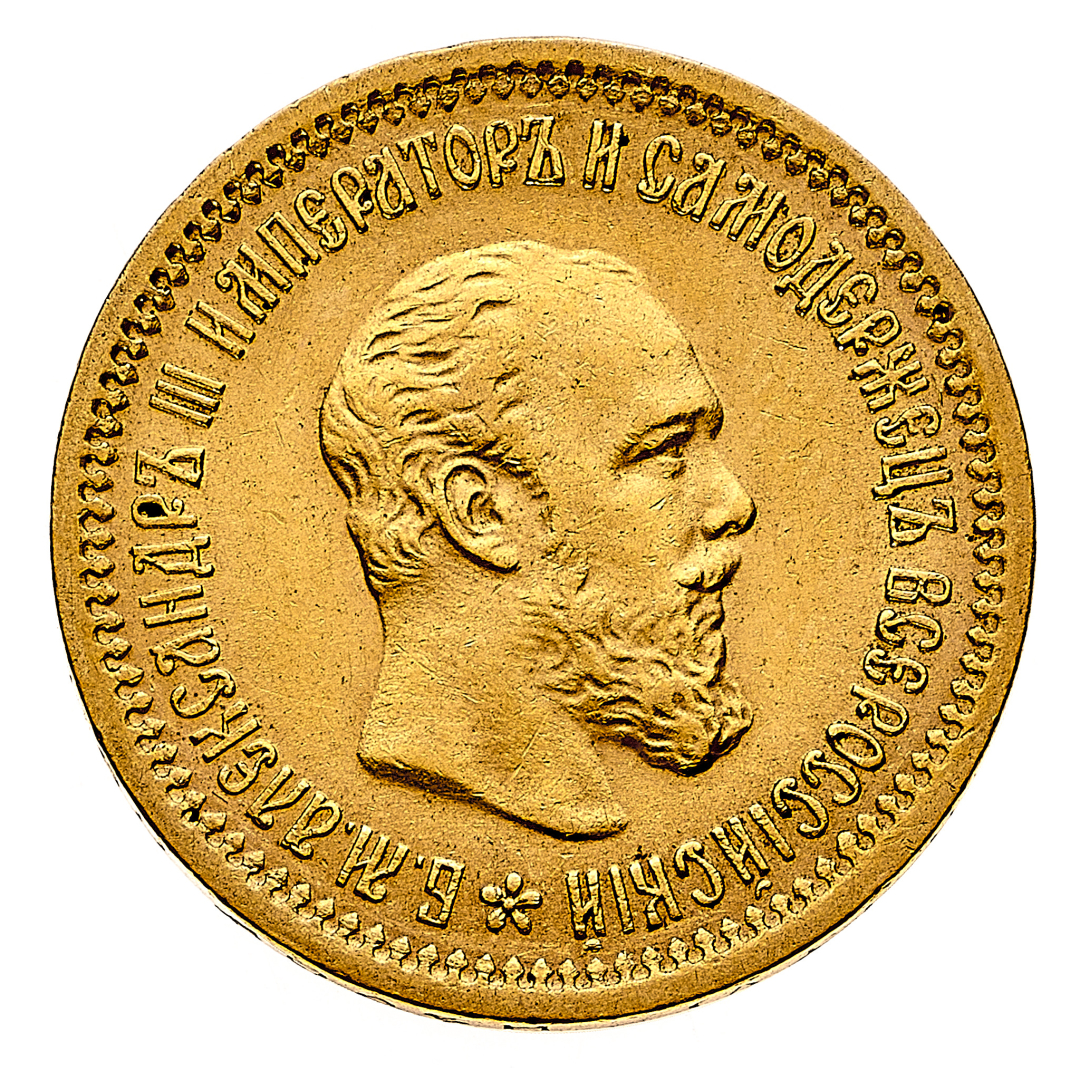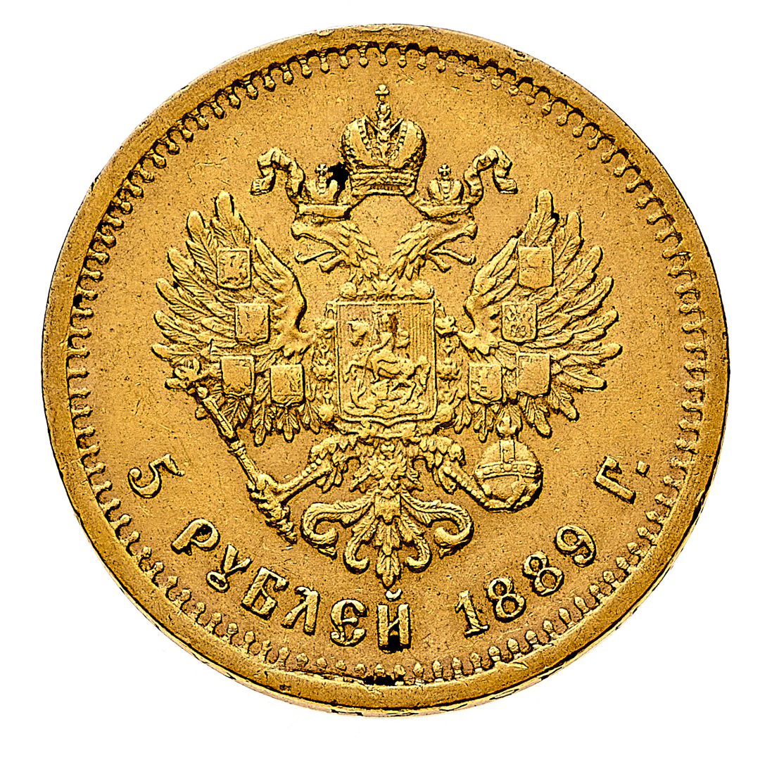 Alessandro III (1881-1894) - 5 Rubli 1889 - Zecca: San Pietroburgo - Diritto: effigie di Alessandro III a destra - Rovescio: aquila bicipite coornata con stemma sul petto - gr. 6,44 - q.SPL