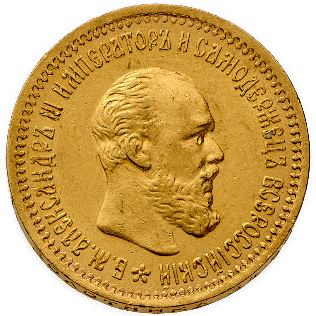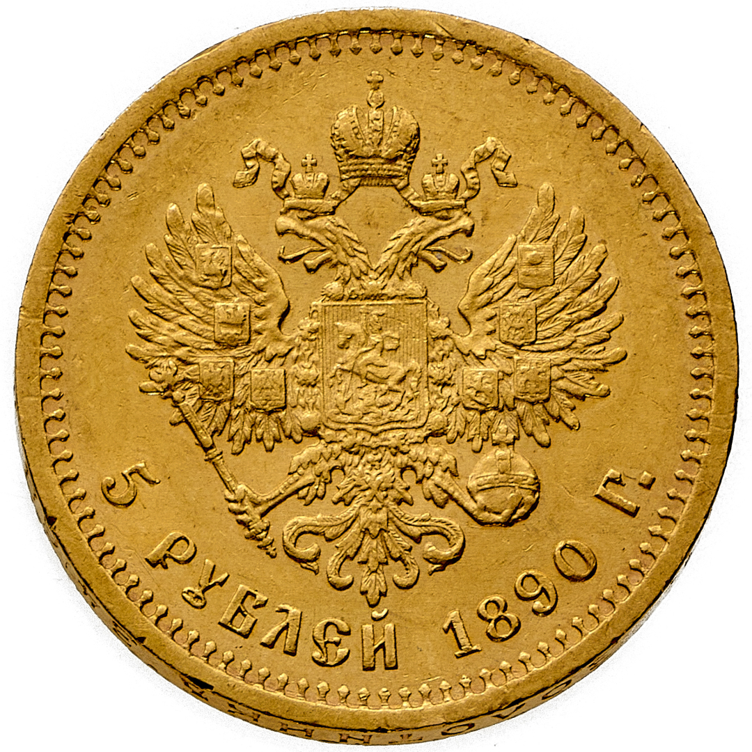 Alessandro III (1881-1894) - 5 Rubli 1890 - Zecca: San Pietroburgo - Diritto: effigie di Alessandro III a destra - Rovescio: aquila bicipite coronata con stemma sul petto - gr. 6,45 - Migliore di SPL