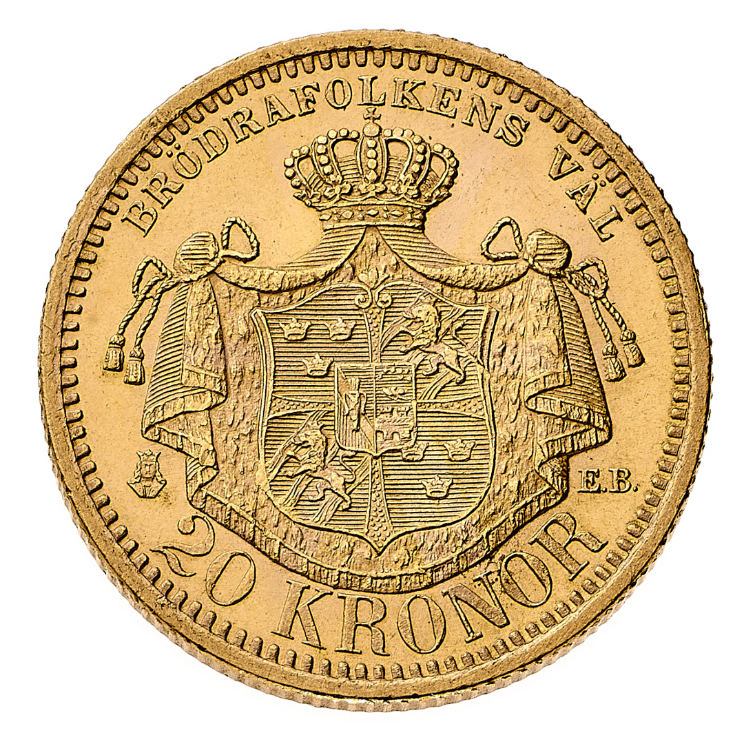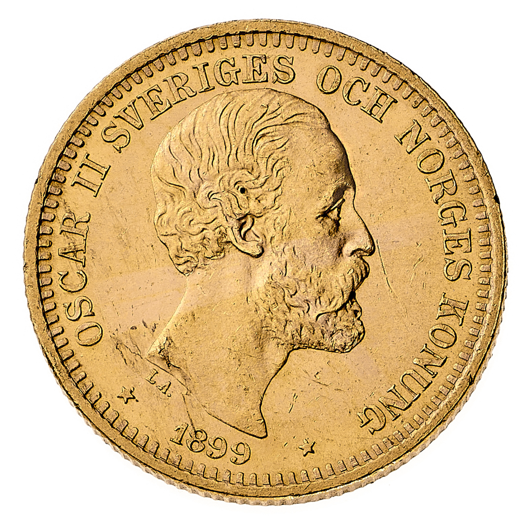 Oscar II (1872-1905) - 20 Kroner 1899 - Diritto: effigie del Re a destra - Rovescio: padiglione ornato e coronato - gr. 8,87 - q.FDC