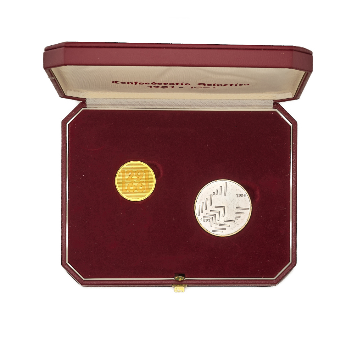 Confederazione (dal 1848) - Serie di 2 valori (50 Franchi in argento e 250 Franchi in oro) 1991 "700° anniversario della confederazione" - Zecca: Berna - In cofanetto originale, FDC