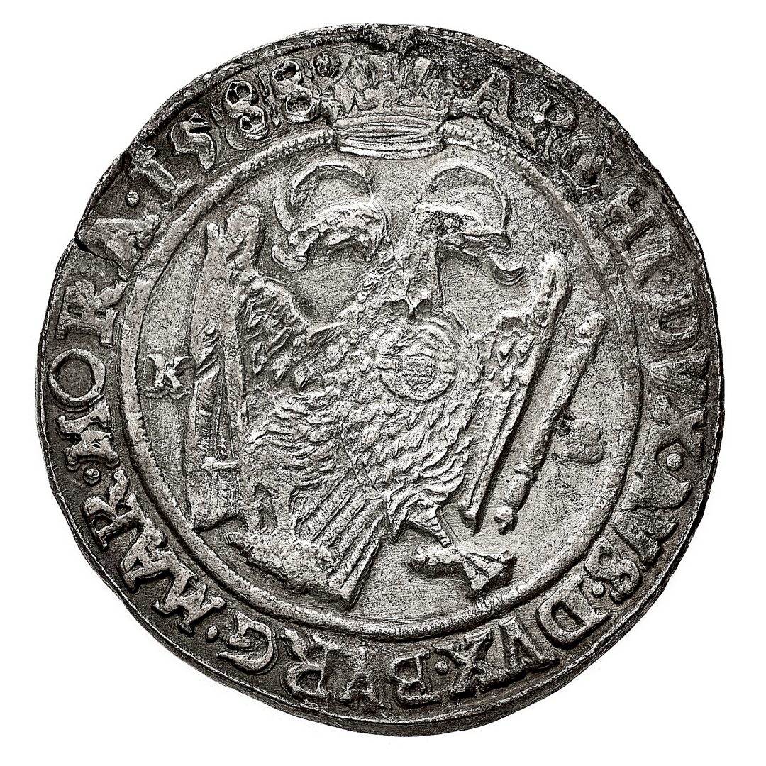 Rudolf (1576-1608) - Tallero 1588 - Zecca: Kremintz - Diritto: busto paludato e corazzato dell'Imperatore a destra - Rovescio: aquila bicipite coronata con stemma sul petto - gr. 28,04 - Lievi difetti del metallo al diritto, altrimenti migliore di BB