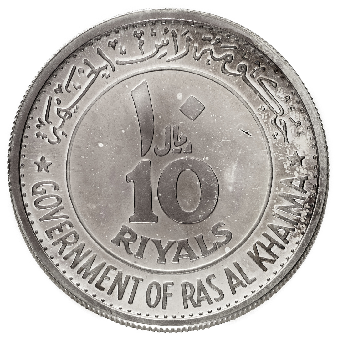 Ras-al-Khaimah - Saqr Bin Muhammad al-Qasimi (1948-2010) - 10 Riyals 1970 "Roma" - FDC - In lotto con un esemplare da 7,5 Riyals della stessa serie in condizione analoga