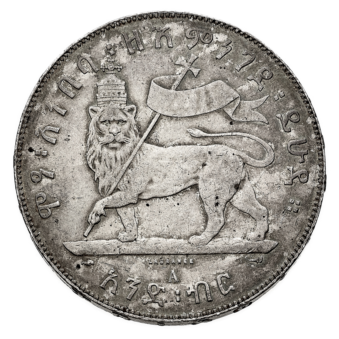 Menelik II (1889-1913) - Birr 1889 EE (1897) - Zecca: Parigi - Diritto: effigie coronata del Re a destra - Rovescio: leone coronato a sinistra con stendardo fra le zampe - gr. 28,06 - SPL