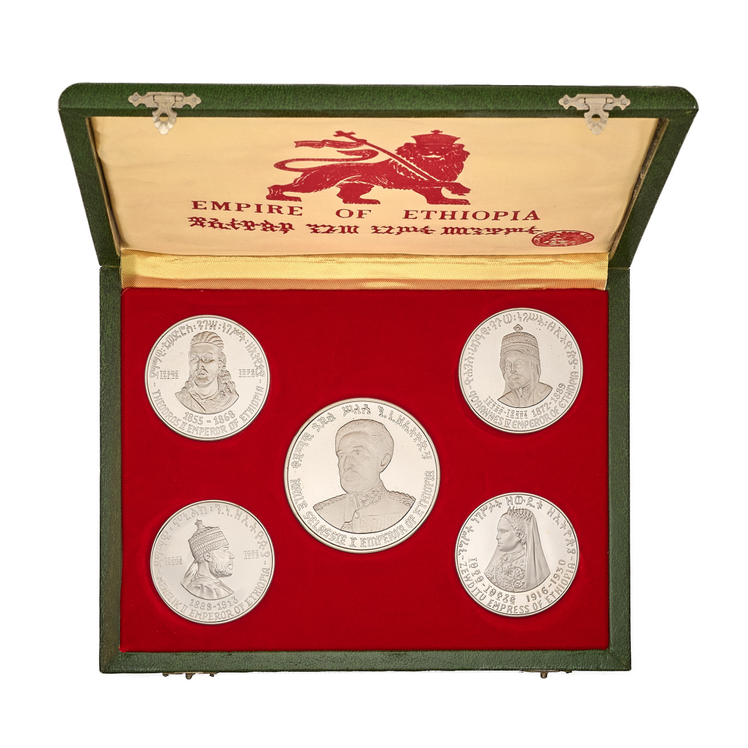 Haile Selassie (1930-1936 e 1941-1974) - Serie di 5 esemplari in argento (5 Dollari (4) e 10 Dollari) 1972 - In cofanetto originale - FDC