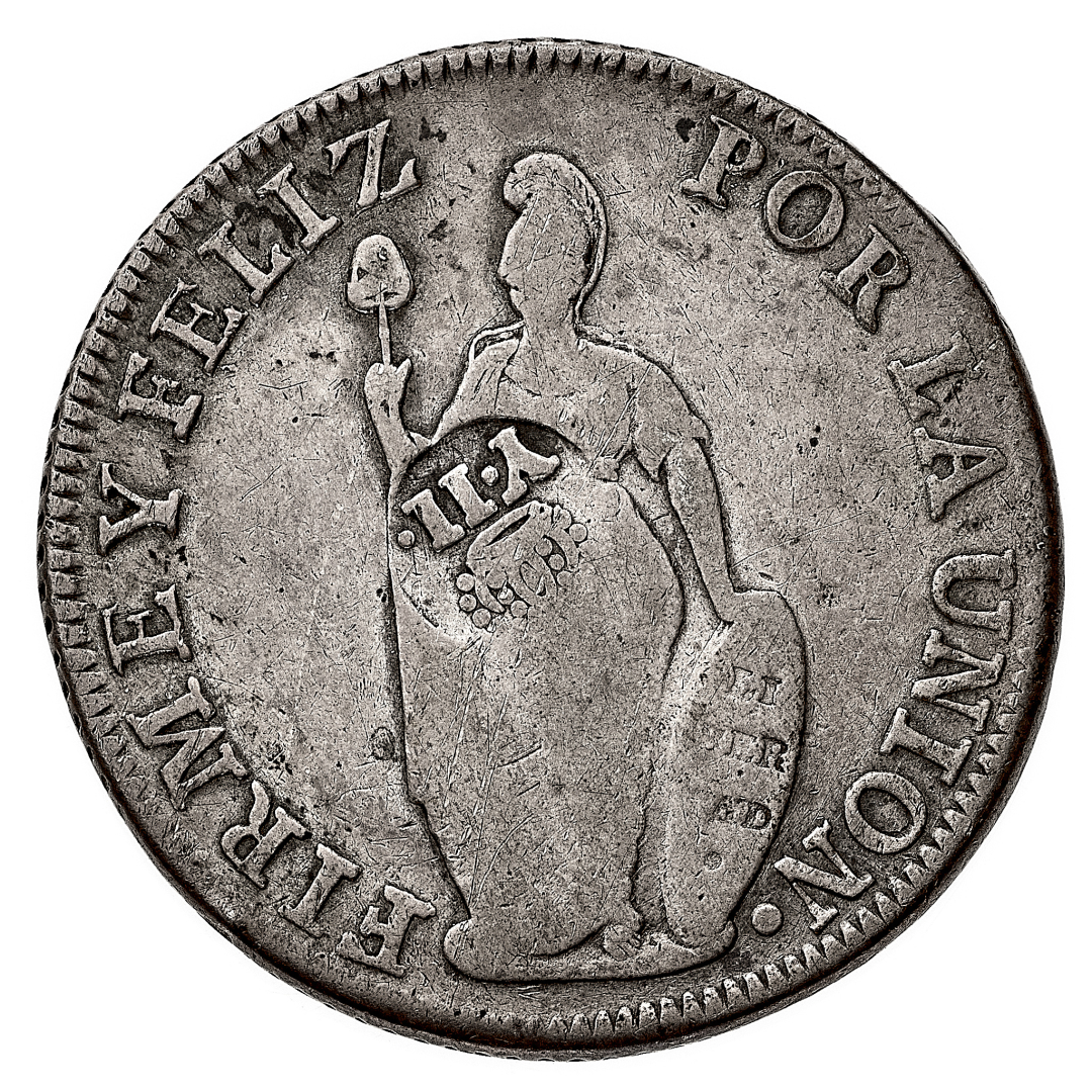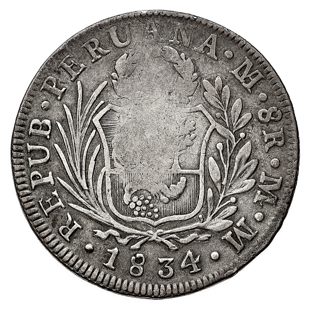 Dominazione spagnola - Isabel II (1833-1868) - 8 Reales 1834 con contromarca delle Filippine Y·II· con corona - Diritto: Libertà stante - Rovescio: stemma fra rami di alloro e di palma - gr. 26,77 - BB