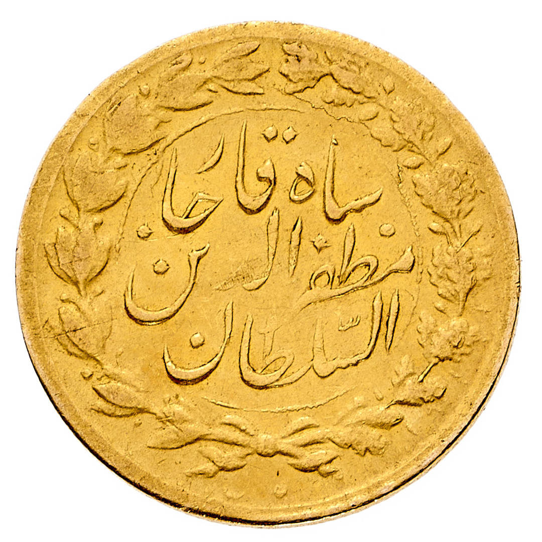 Muzaffar al-Din Shah (AH 1313-24 1896-1907) - Toman AH 1316 (1898/9) - Zecca: Teheran - Diritto: busto in uniforme dello Shah di tre quarti verso destra - Rovescio: legenda e data all'interno di una corona di quercia e di alloro - gr. 2,84 - SPL
