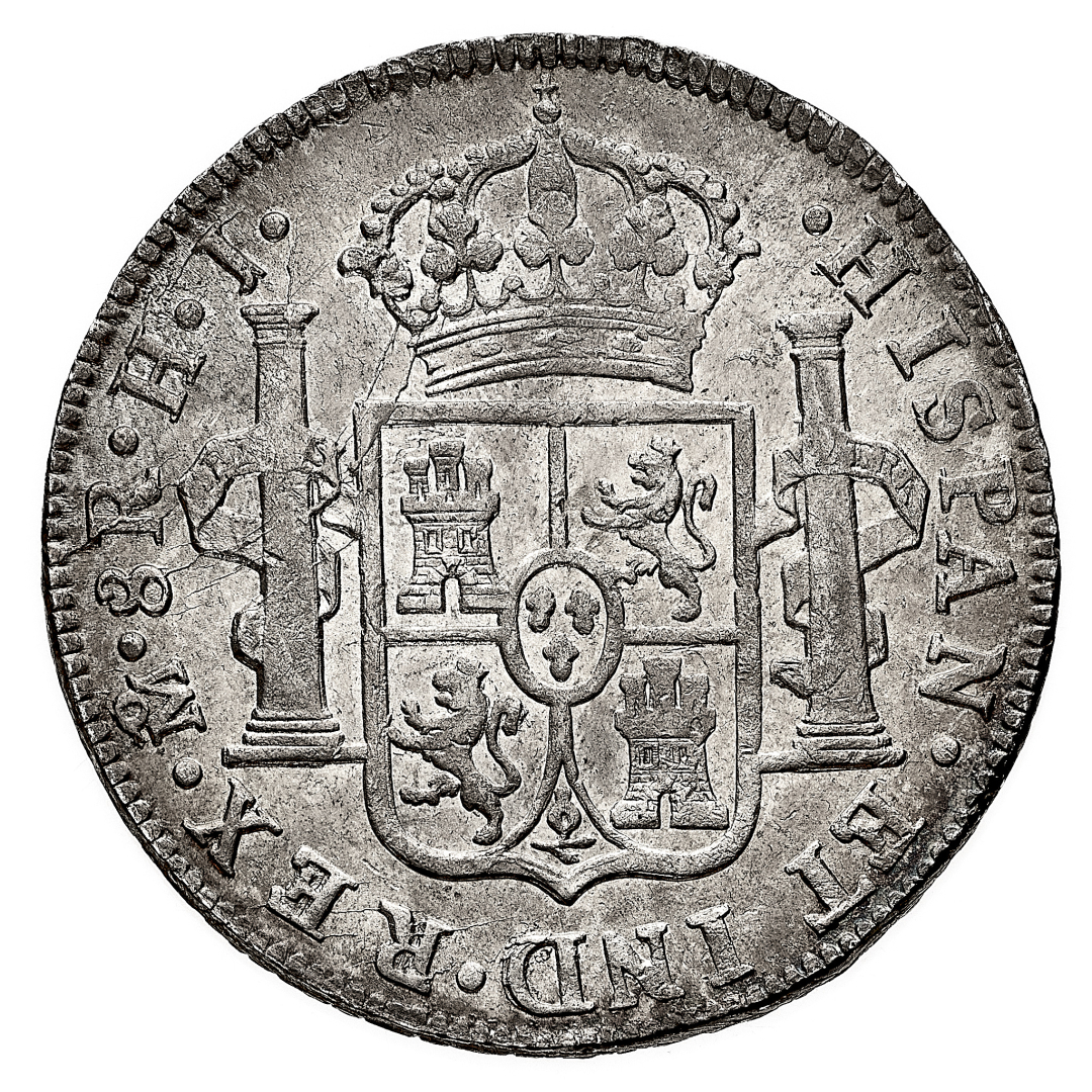 Ferdinando VII (1808-1833) - 8 Reales 1810 - Zecca: Città del Messico - Diritto: effigie del Re a destra - Rovescio: stemma di Spagna fra due colonne - gr. 26,96 - SPL