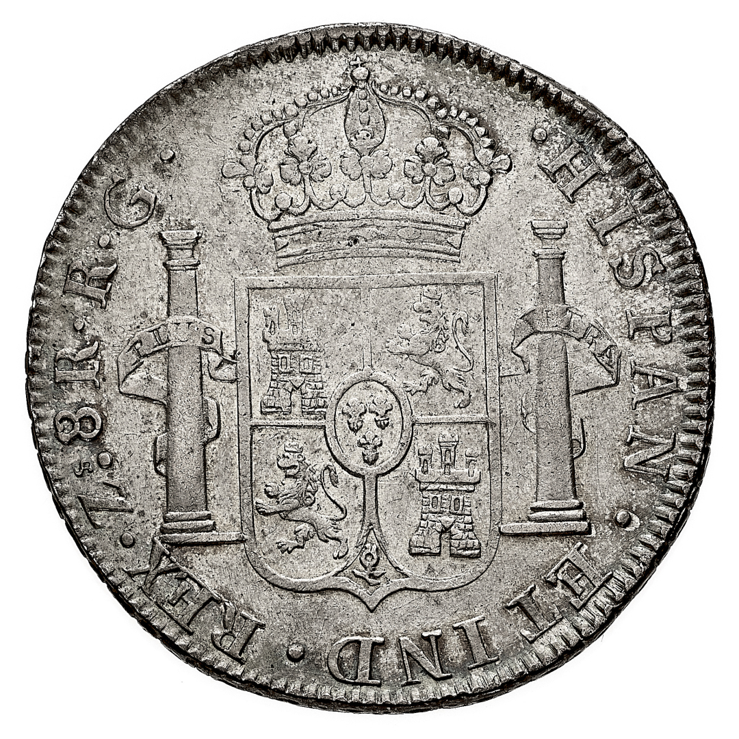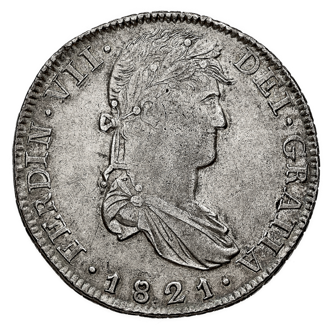 Ferdinando VII (1808-1833) - 8 Reales 1821 - Zecca: Zecatecas - Diritto: effigie del Re a destra - Rovescio: stemma di Spagna fra due colonne - gr. 26,92 - q.SPL