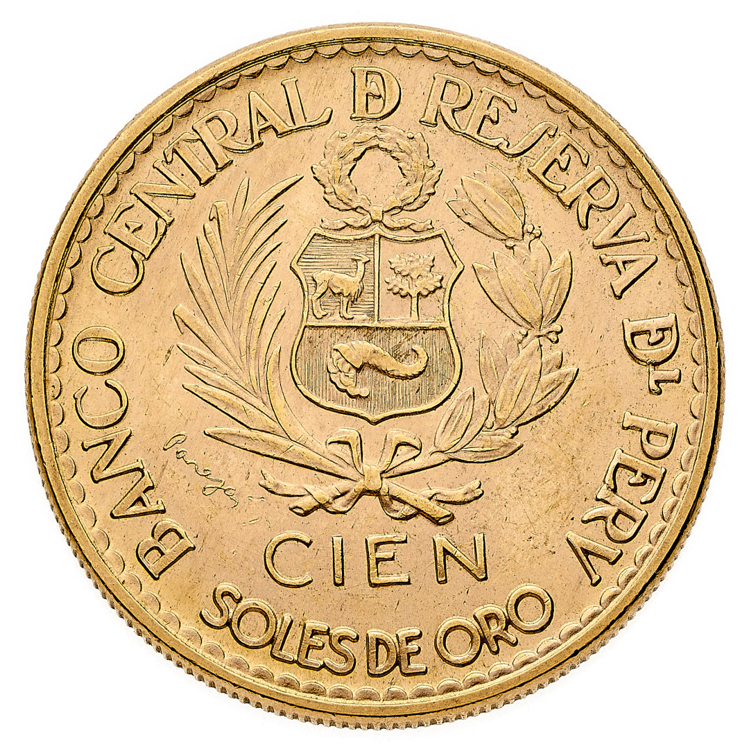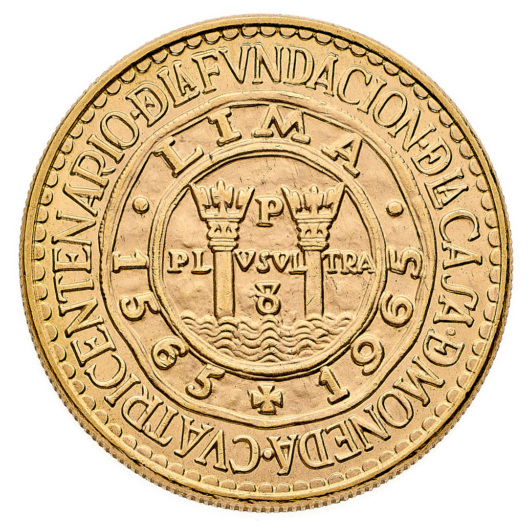Repubblica (dal 1821) - 100 Soles 1965 - Zecca: Lima - gr. 46,78 - FDC - La moneta celebra il 400° anniversario della zecca di Lima