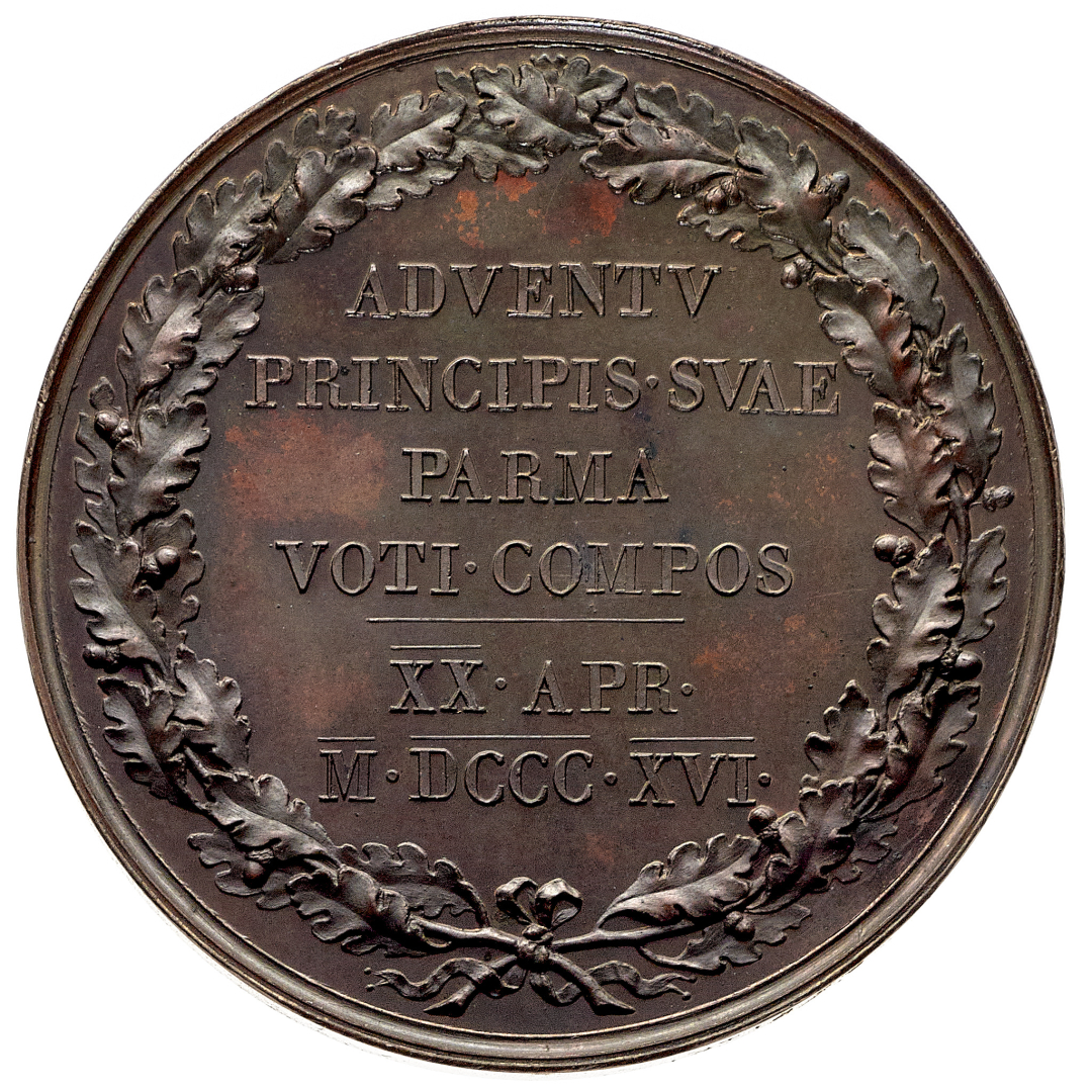 Parma - Maria Luigia d'Austria (1814-1847) - Medaglia 1816 per l'ingresso di Maria Luigia in città - Opus Santarelli - Diametro mm. 41 e peso gr. 35,87 - Piacevole patina di medagliere, q.FDC con piccolo numero bianco di antica collezione scritto a china