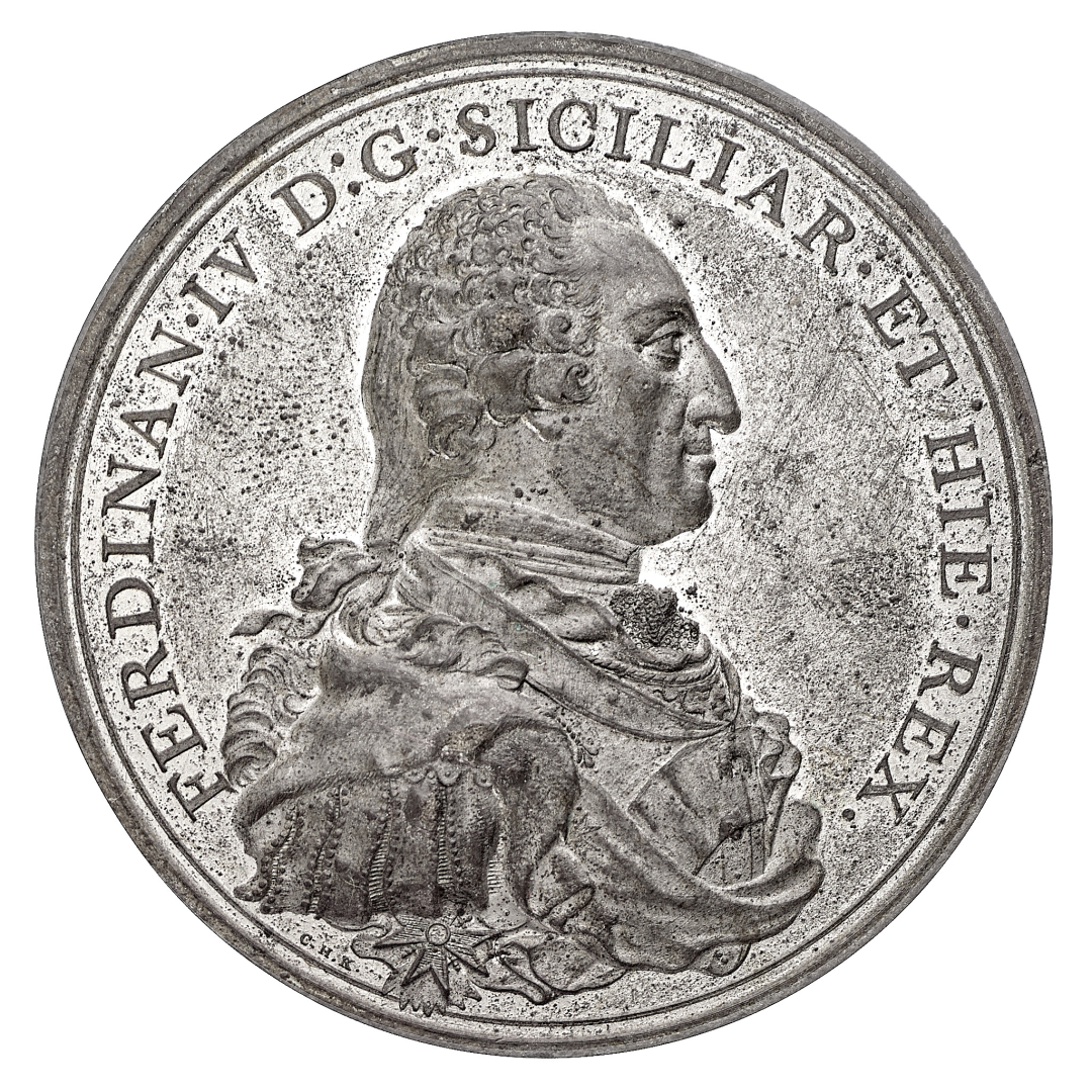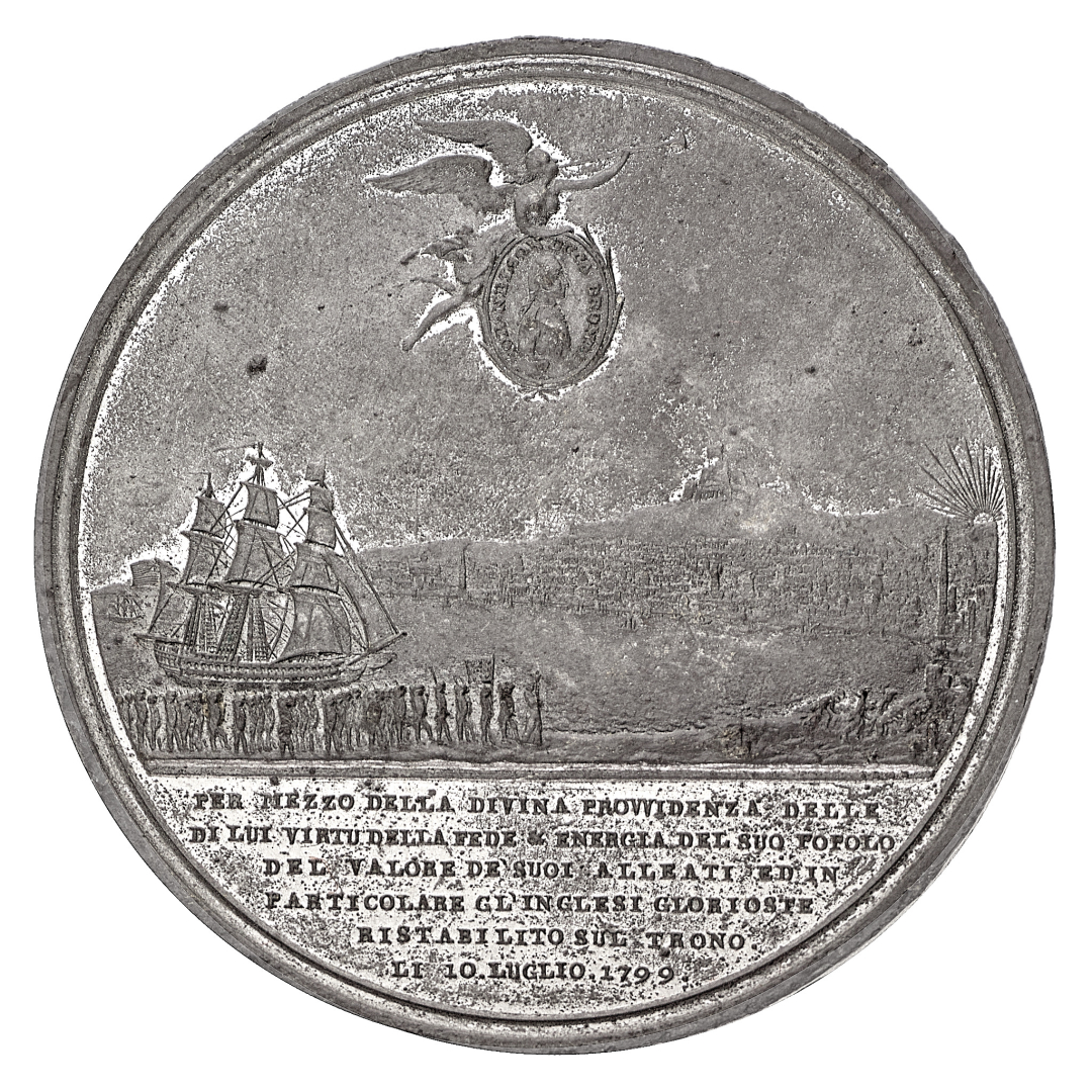 Regno di Napoli - Ferdinando IV di Borbone (1799-1805) - Medaglia 10.7.1799 per la Restaurazione - Opus Conrad Heinrich Kuchler - Diametro mm. 48 e peso gr. 47,30 - Migliore di SPL