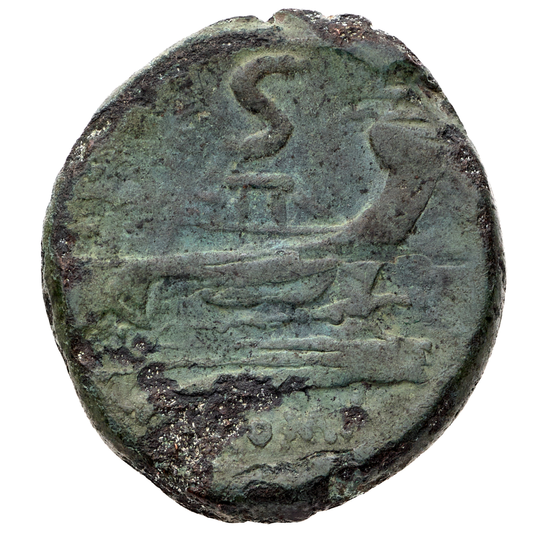 Semisse anonimo databile dopo il 211 a.C. - Zecca: Roma - Diritto: testa di Saturno a destra - Rovescio: prora di nave a destra; in alto S - gr. 15,22 - BB - Corredata da bustina di antica collezione